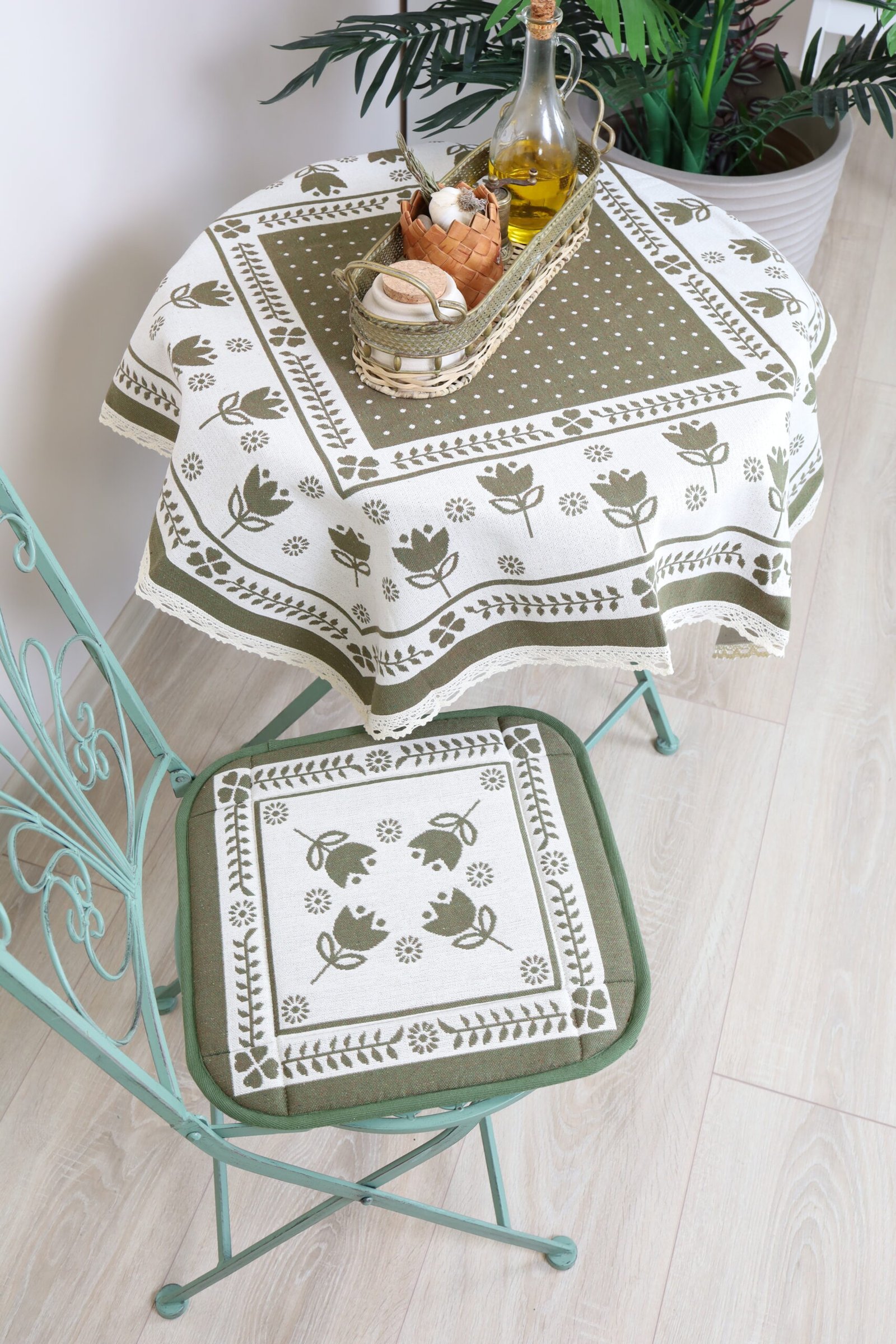 Chair cushion Green tulips