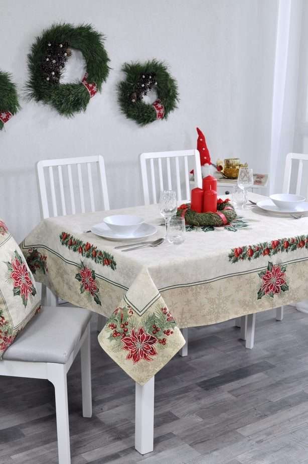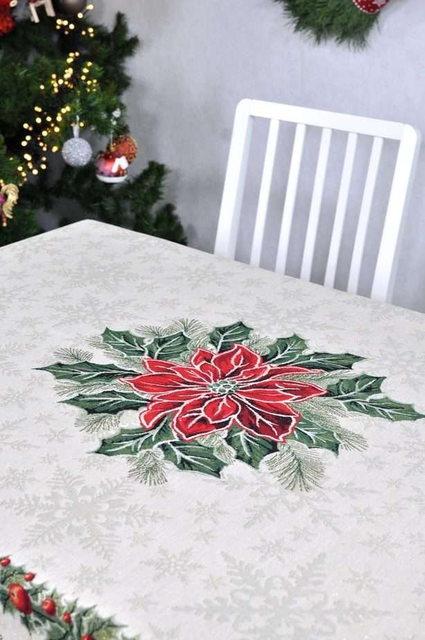 Fibre, elegant, solid tapestries table Christmas Flower, decorated with Christmas motifs. This is a wonderful, delicate and memorable Christmas present. This table is accompanied by table wipes, table tracks and decorative pillows from the same collection. We invite you to look at other items of this collection and choose a set to decorate the interior of the house according to your needs. You will find Christmas table napkins whereThe table tracks of different sizes are in this shelves, o decorative pillow covers where. Care: we recommend cleaning the tablecloths with dry chemical cleaning. In an automatic washing machine, the fabric can be washed at a temperature not exceeding 30 degrees without the use of bleach and chlorine-containing washing agents. Gobelenic tissue must be naturally dried, it is important not to dry, and cannot be dried in an automatic dryer. It is recommended to compare not more than 110 degrees. Made in the European Union. In reality, the shades of the products can differ slightly from those of the photographs due to different settings of the computer colours, brightness and darkness, contrast settings.