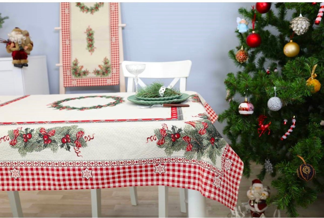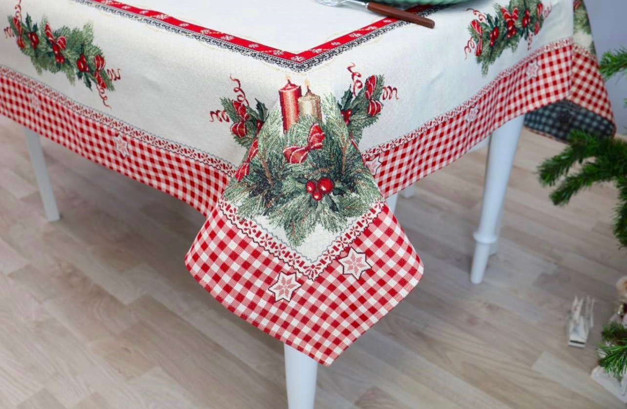 This table is accompanied by table wipes, table tracks and decorative pillows from the same collection. We invite you to look at other items of this collection and choose a set to decorate the interior of the house according to your needs. You will find Christmas table napkins whereThe table tracks of different sizes are in this shelves, o decorative pillow covers where. Care: we recommend cleaning the tablecloths with dry chemical cleaning. In an automatic washing machine, the fabric can be washed at a temperature not exceeding 30 degrees without the use of bleach and chlorine-containing washing agents. Gobelenic tissue must be naturally dried, it is important not to dry, and cannot be dried in an automatic dryer. It is recommended to compare not more than 110 degrees. Made in the European Union. In reality, the shades of the products can differ slightly from those of the photographs due to different settings of the computer colours, brightness and darkness, contrast settings.