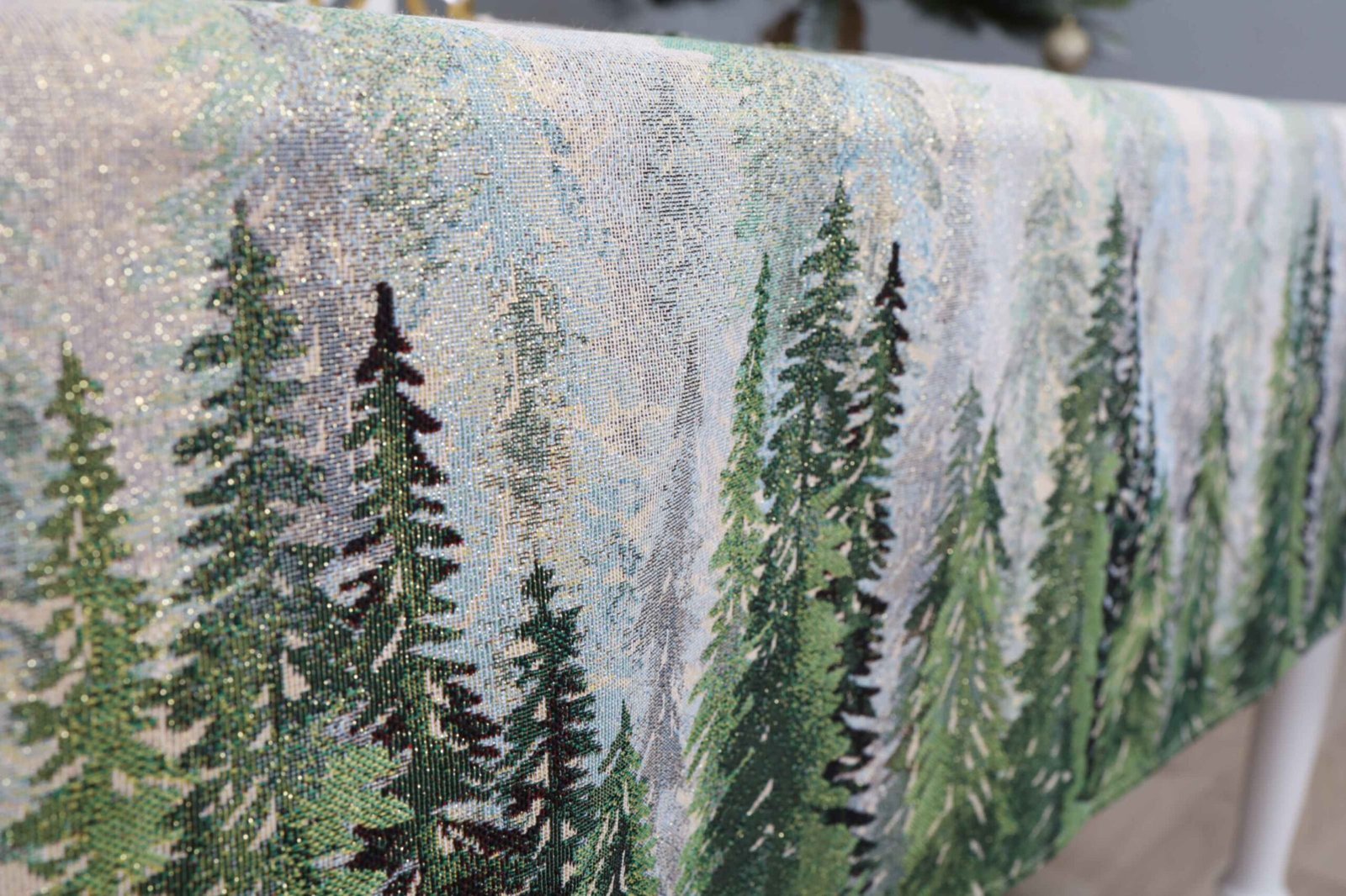 Decorative, elegant, solid tapestries Christmas table Forest decorated with Christmas tree motifs. This is a wonderful, delicate and memorable Christmas present. This table is accompanied by table wipes, table tracks and decorative pillows from the same collection. We invite you to look at other items of this collection and choose a set to decorate the interior of the house according to your needs. You will find Christmas table napkins whereThe table tracks of different sizes are in this shelves, o decorative pillow covers where. Maintenance: Christmas table We recommend cleaning with dry chemical cleaning. In an automatic washing machine, the fabric can be washed at a temperature not exceeding 30 degrees without the use of bleach and chlorine-containing washing agents. Gobelenic tissue must be naturally dried, it is important not to dry, and cannot be dried in an automatic dryer. It is recommended to compare not more than 110 degrees. Made in the European Union. In reality, the shades of the products may differ slightly from those of the photographs due to different settings of the computer colours, brightness and darkness, contrast settings.