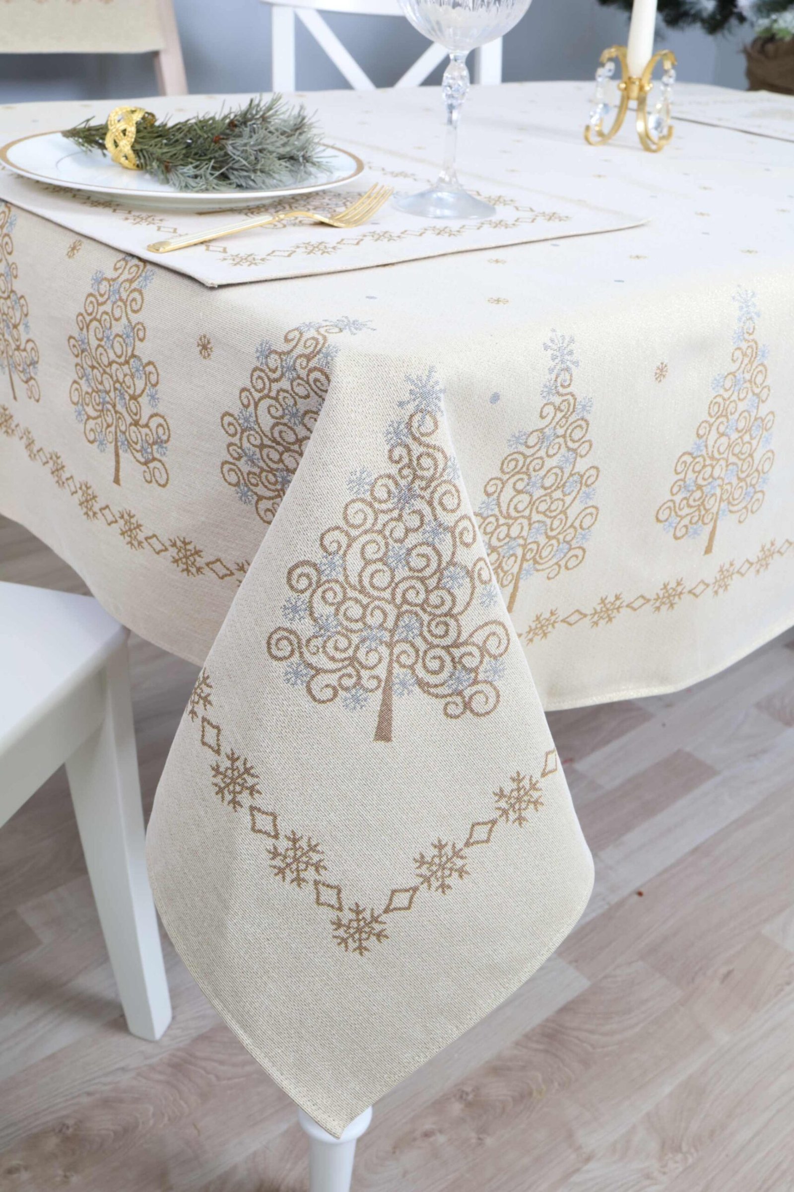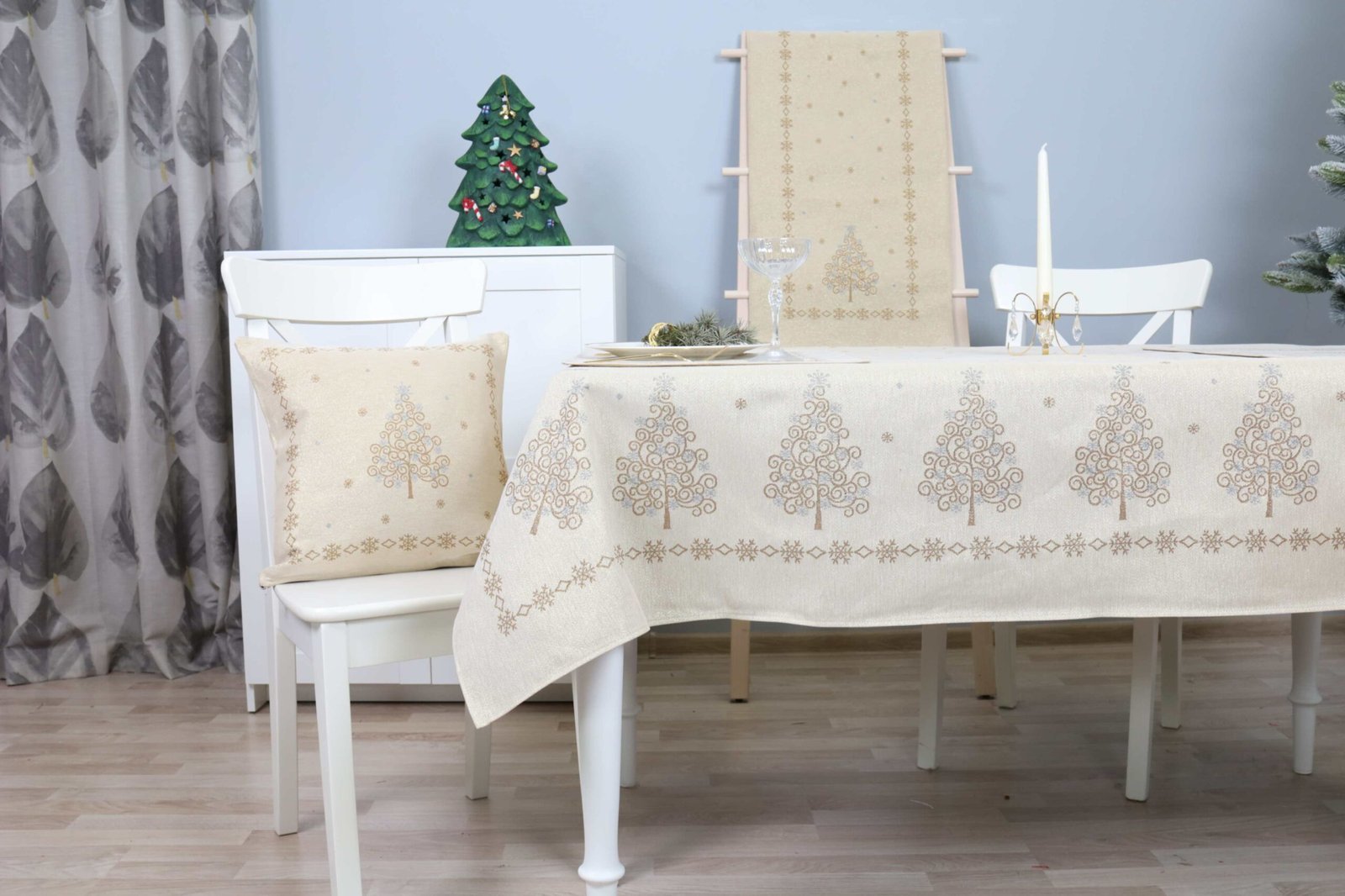 Decorative, elegant, solid tapestries Christmas table Miraculous Holidays decorated with Christmas flower motifs. This is a wonderful, delicate and memorable Christmas present. This table is accompanied by table wipes, table tracks and decorative pillows from the same collection. We invite you to look at other items of this collection and choose a set to decorate the interior of the house according to your needs. You will find Christmas table napkins whereThe table tracks of different sizes are in this shelves, o decorative pillow covers where. Maintenance: Christmas table Miraculous Holidays is recommended for dry chemical cleaning. In an automatic washing machine, the fabric can be washed at a temperature not exceeding 30 degrees without the use of bleach and chlorine-containing washing agents. Gobelenic tissue must be naturally dried, it is important not to dry, and cannot be dried in an automatic dryer. It is recommended to compare not more than 110 degrees. Made in the European Union. In reality, the shades of the products may differ slightly from those of the photographs due to different settings of the computer colours, brightness and darkness, contrast settings.