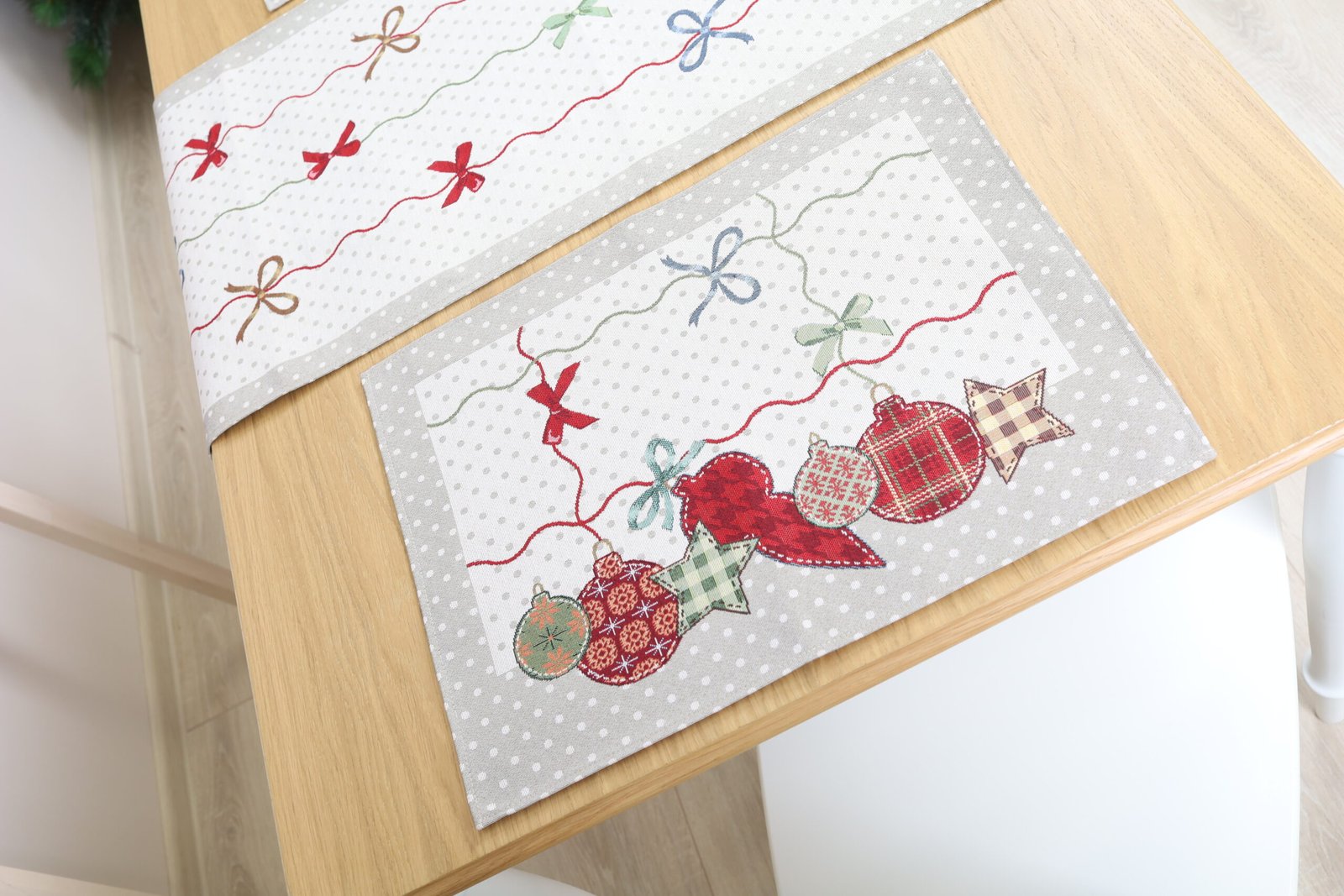 Decorative, elegant, solid tapestries Christmas table napkin Christmas Table Napkin Christmas Baubles, decorated with Christmas motifs. This is a wonderful and memorable Christmas present. Composition: 63% polyester, 34% cotton, 3% acrylic These table wipes combine table tracks, tablecloths and decorative pillows from the same collection. We invite you to look at other items of this collection and choose a set to decorate the interior of the house according to your needs. See table tracks whereThe different sizes of tablecloths are in this shelves, and decorative pillow covers – where. Maintenance: table napkins Christmas Table Napkin Christmas Baubles We recommend dry chemical cleaning. In an automatic washing machine, the fabric can be washed at a temperature not exceeding 30 degrees without the use of bleach and chlorine-containing washing agents. Gobelenic tissue must be naturally dried, it is important not to dry, and cannot be dried in an automatic dryer. It is recommended to compare not more than 110 degrees. In reality, the shades of the products can differ slightly from those of the photographs due to different settings of the computer colours, brightness and darkness, contrast settings.