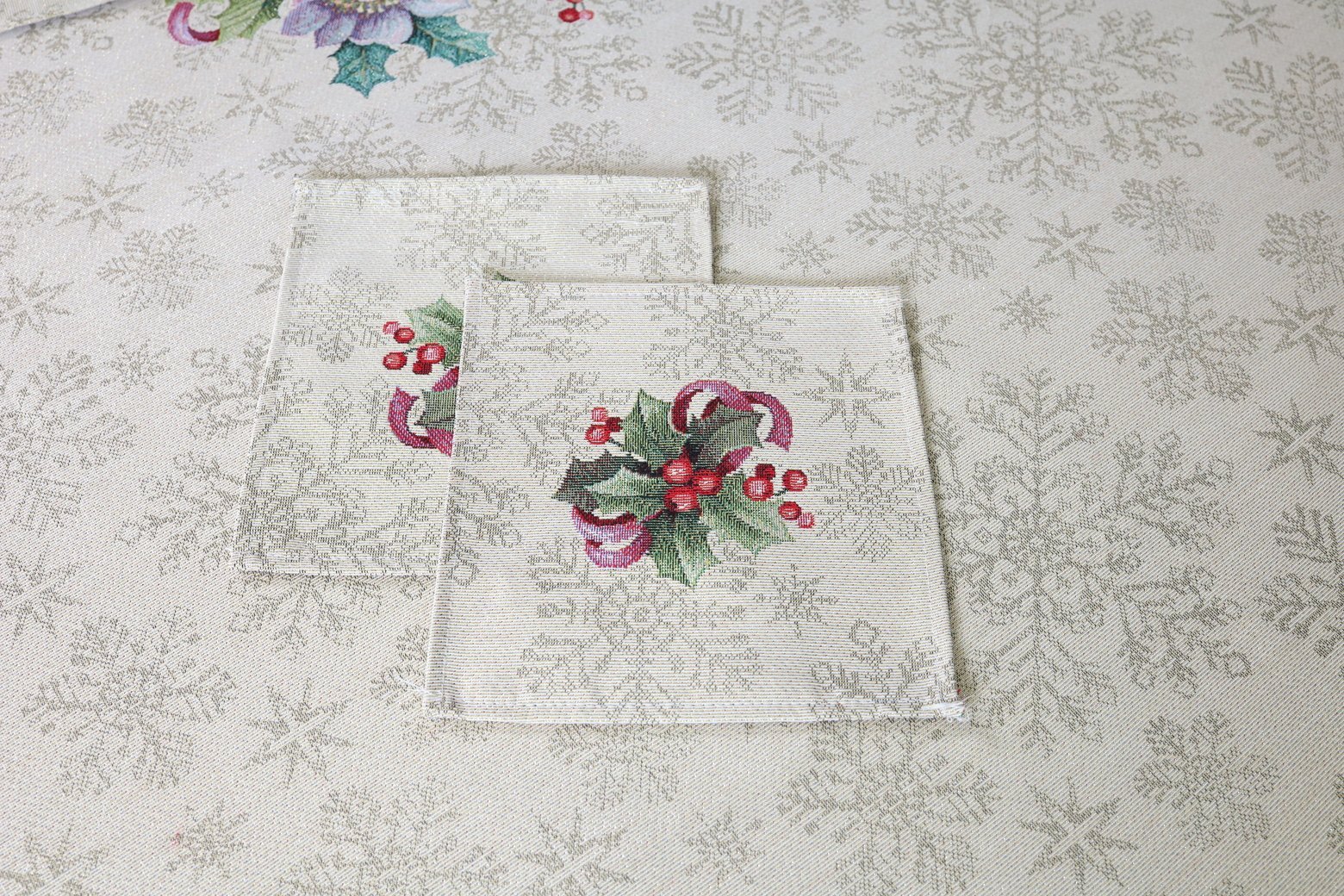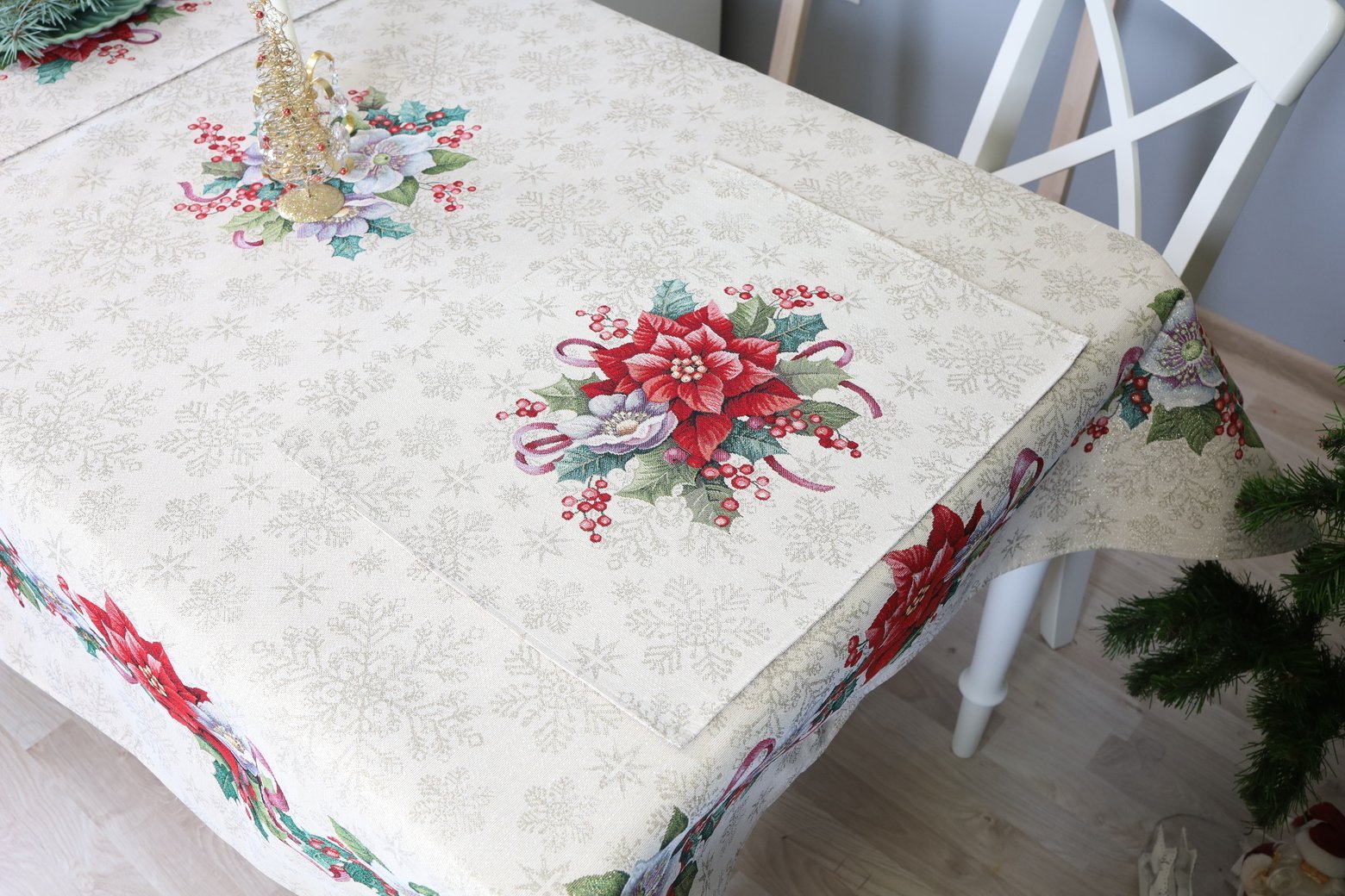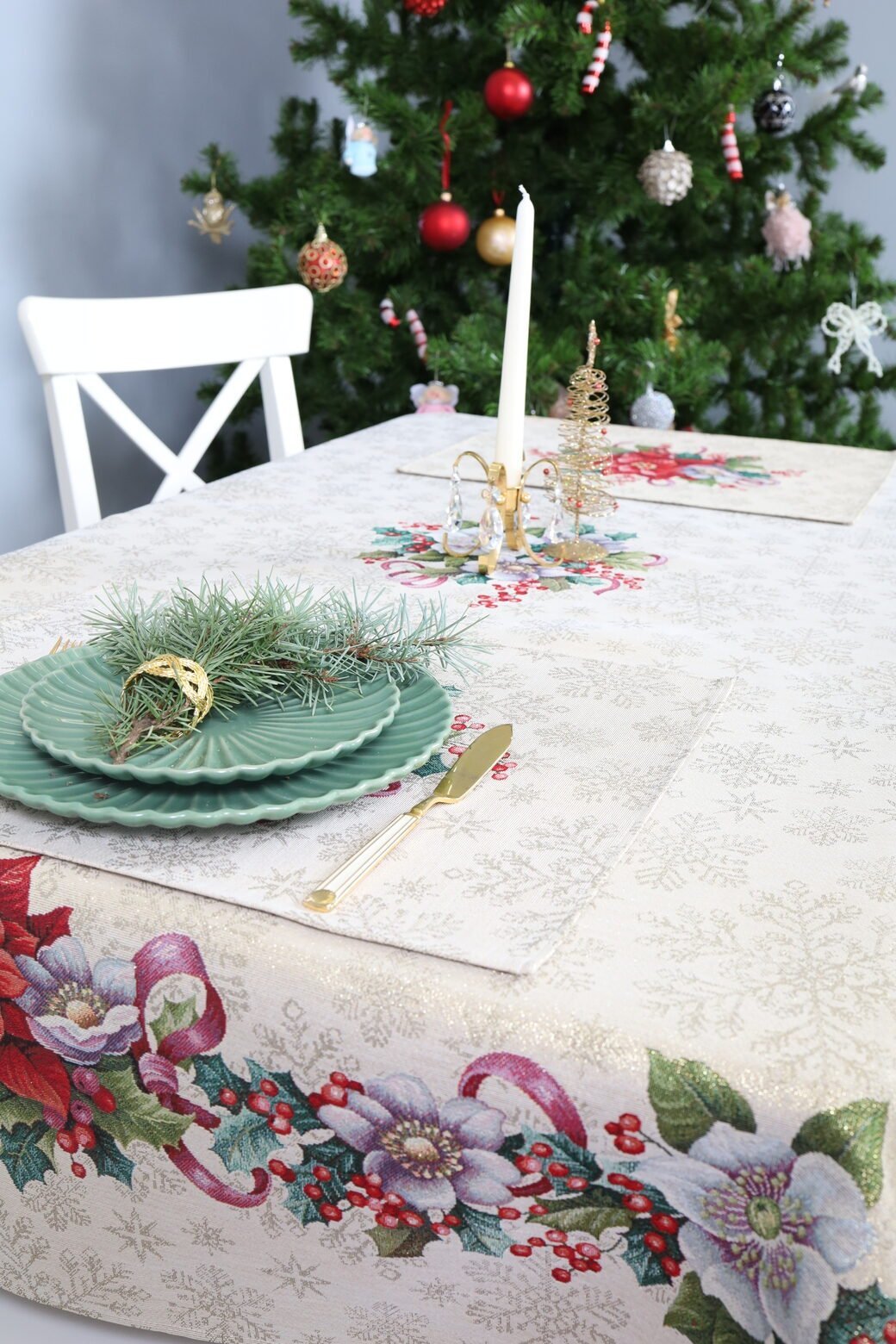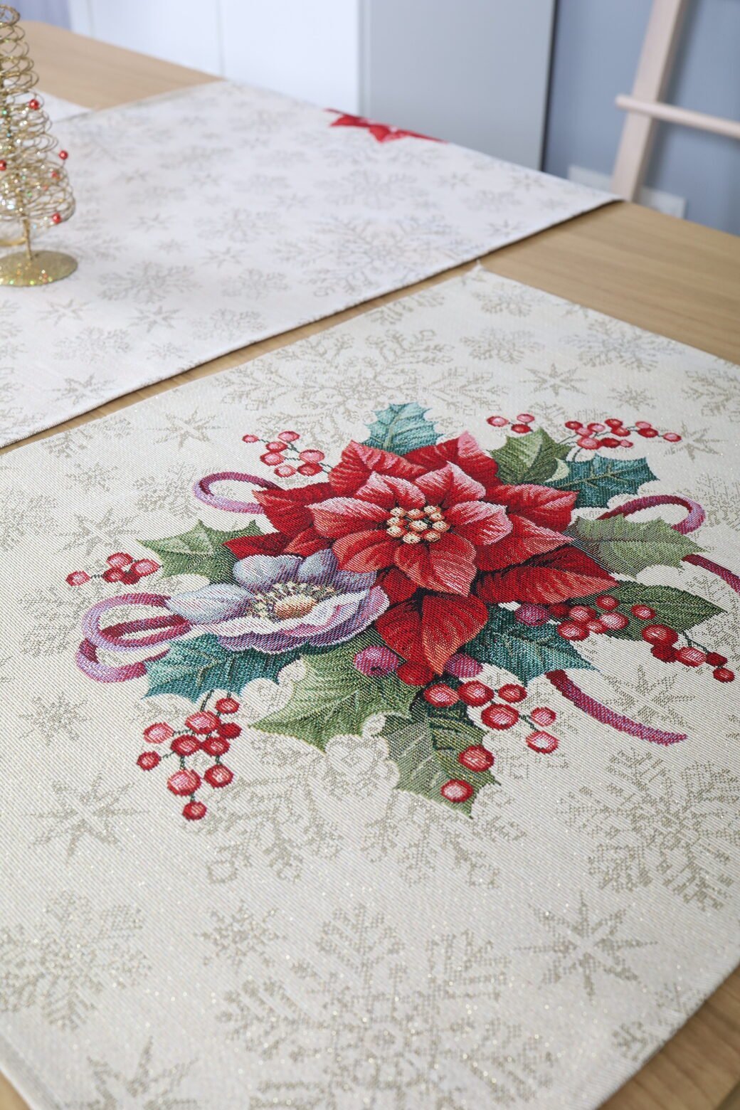 Decorative, elegant, solid tapestries table napkin Golden Holidays decorated with Christmas flower motifs. This is a wonderful and memorable Christmas present. These table wipes combine table tracks, tablecloths and decorative pillows from the same collection. We invite you to look at other items of this collection and choose a set to decorate the interior of the house according to your needs. See table tracks whereThe different sizes of tablecloths are in this shelves, o decorative pillow covers where. Care: table wipes Golden Holidays recommend dry chemical cleaning. In an automatic washing machine, the fabric can be washed at a temperature not exceeding 30 degrees without the use of bleach and chlorine-containing washing agents. Gobelenic tissue must be naturally dried, it is important not to dry, and cannot be dried in an automatic dryer. It is recommended to compare not more than 110 degrees. Fabric: 40% cotton, 36% polyester, 24% acrylic. Due to the specific nature of the fabric of the product, the components of the constituent materials may differ slightly. Made in the European Union. In reality, the shades of the products may differ slightly from those of the photographs due to different settings of the computer colours, brightness and darkness, contrast settings.