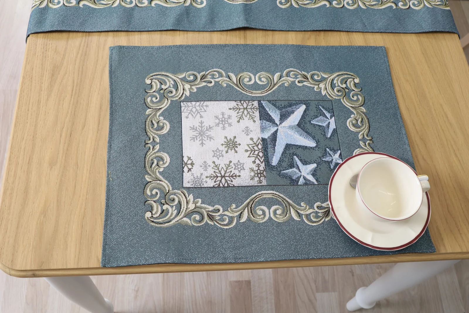 Decorative, elegant, solid tapestries Christmas table napkin Holiday Mosaic decorated with Christmas flower motifs. This is a wonderful and memorable Christmas present. These table wipes combine table tracks, tablecloths and decorative pillows from the same collection. We invite you to look at other items of this collection and choose a set to decorate the interior of the house according to your needs. See table tracks whereThe different sizes of tablecloths are in this shelves, o decorative pillow covers where. Care: We recommend cleaning the table wipes on Holiday Mosaic with dry chemical cleaning. In an automatic washing machine, the fabric can be washed at a temperature not exceeding 30 degrees without the use of bleach and chlorine-containing washing agents. Gobelenic tissue must be naturally dried, it is important not to dry, and cannot be dried in an automatic dryer. It is recommended to compare not more than 110 degrees. Fabric: 40% cotton, 36% polyester, 24% acrylic. Due to the specific nature of the fabric of the product, the components of the constituent materials may differ slightly. Made in the European Union. In reality, the shades of the products may differ slightly from those of the photographs due to different settings of the computer colours, brightness and darkness, contrast settings.