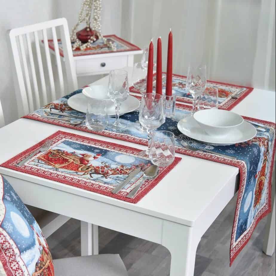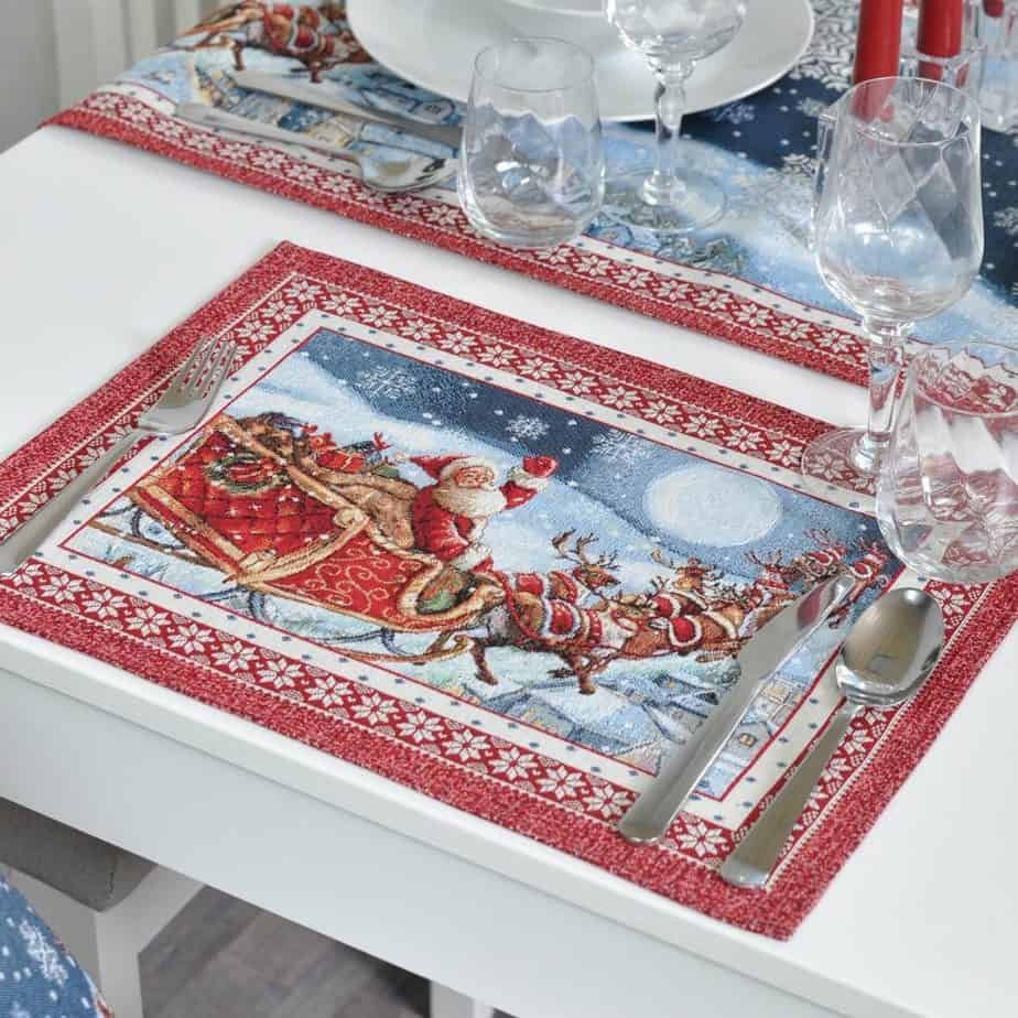Fibre, elegant, solid tapestries table napkin Santa in Sleigh, decorated with Christmas reasons. This is a wonderful, delicate and memorable Christmas present. These table wipes combine table tracks, tablecloths and decorative pillows from the same collection. We invite you to look at other items of this collection and choose a set to decorate the interior of the house according to your needs. See table tracks whereThe different sizes of tablecloths are in this shelves, o decorative pillow covers where. Maintenance: We recommend cleaning table wipes with dry chemical cleaning. In an automatic washing machine, the fabric can be washed at a temperature not exceeding 30 degrees without the use of bleach and chlorine-containing washing agents. Gobelenic tissue must be naturally dried, it is important not to dry, and cannot be dried in an automatic dryer. It is recommended to compare not more than 110 degrees. Fabric: 40% cotton, 36% polyester, 24% acrylic. Due to the specific nature of the fabric of the product, the components of the constituent materials may differ slightly. Made in the European Union. In reality, the shades of the products may differ slightly from those of the photographs due to different settings of the computer colours, brightness and darkness, contrast settings.