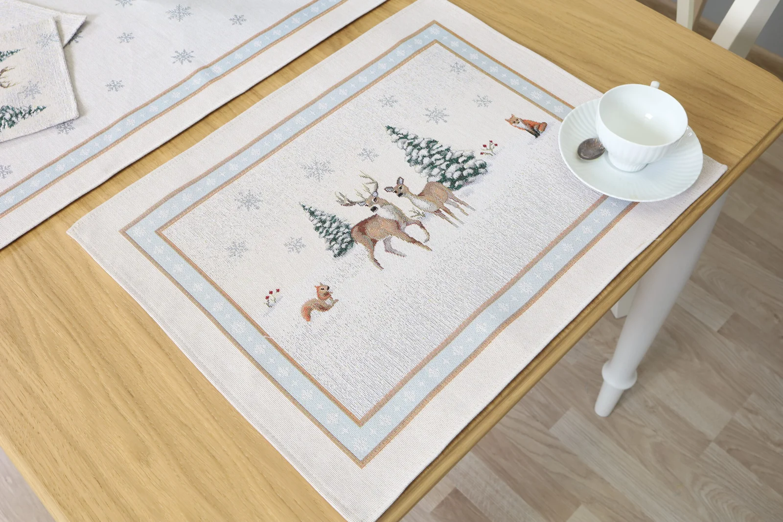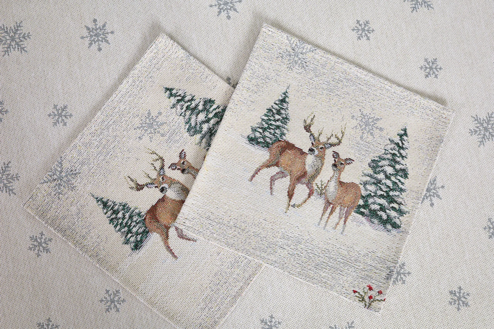 Decorative, elegant, solid tapestries Christmas table napkin Winter Miracles decorated with Christmas motifs. This is a wonderful and memorable Christmas present. These table wipes combine table tracks, tablecloths and decorative pillows from the same collection. We invite you to look at other items of this collection and choose a set to decorate the interior of the house according to your needs. See table tracks whereThe different sizes of tablecloths are in this shelves, o decorative pillow covers where. Maintenance: Winter Miracles is recommended for dry chemical cleaning. In an automatic washing machine, the fabric can be washed at a temperature not exceeding 30 degrees without the use of bleach and chlorine-containing washing agents. Gobelenic tissue must be naturally dried, it is important not to dry, and cannot be dried in an automatic dryer. It is recommended to compare not more than 110 degrees. Fabric: 40% cotton, 36% polyester, 24% acrylic. Due to the specific nature of the fabric of the product, the components of the constituent materials may differ slightly. Made in the European Union. In reality, the shades of the products may differ slightly from those of the photographs due to different settings of the computer colours, brightness and darkness, contrast settings.