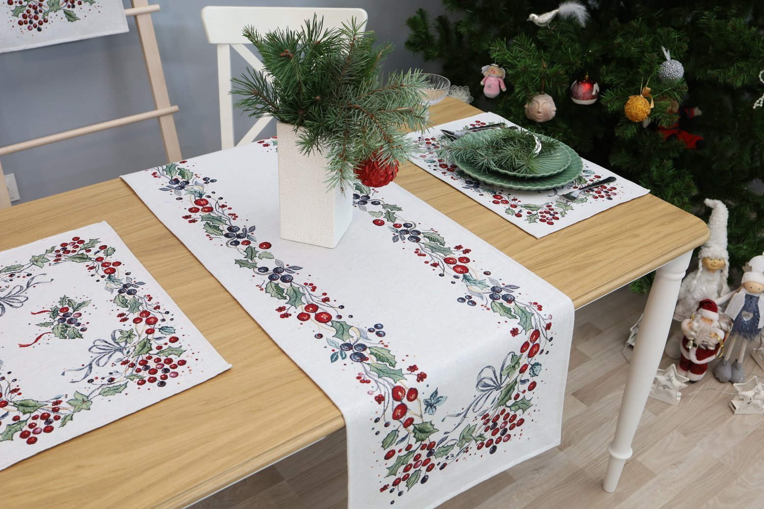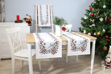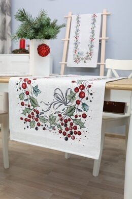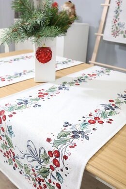 Table runner Christmas berries is made from tapestry fabric – subtle, decorative, luxurious, and always fashionable. Beautifully woven fabric table runners decorate the interior, while the durable tapestry fabric protects the table from “hot” stains, scratches, and general wear and tear. When you want different, unique table decorations, we invite you to purchase this fabric table runner made of tapestry fabric.