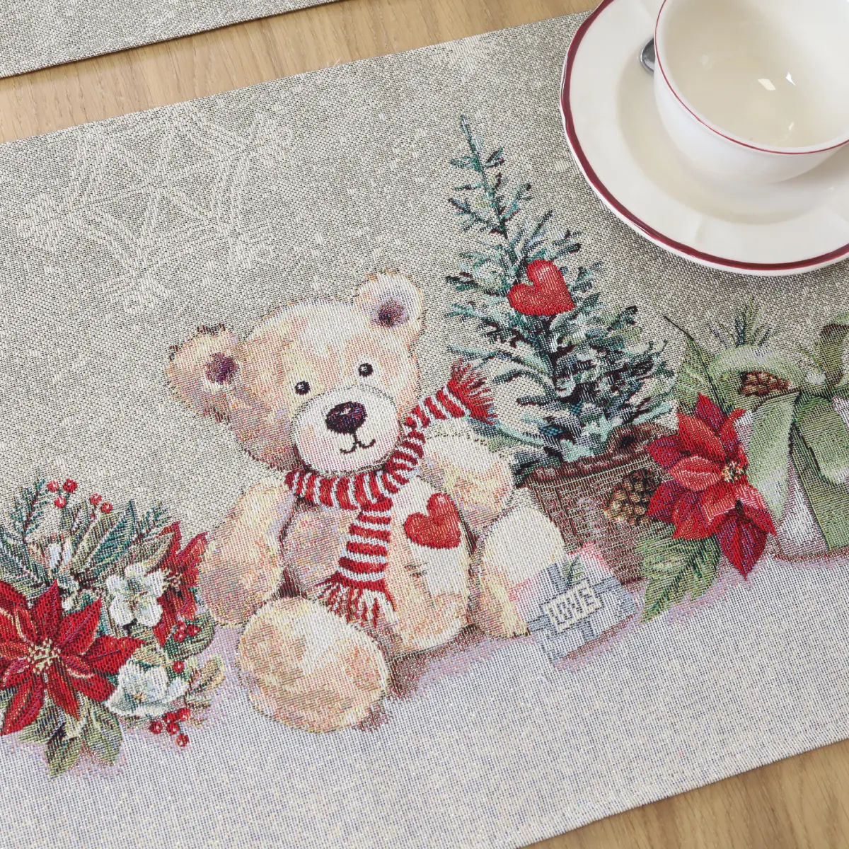 made of tapestries – delicate, decorative, luxurious and always fashionable. The table tracks decorate the interior, while the solid tapestries protect the table from hot spots, scratches and general deterioration of the table. When you want other, special table decorations, we invite you to purchase a fabric track from tapestries. Composition: 63% polyester, 34% cotton, 3% acrylic Maintenance: table tracks are recommended for dry chemical cleaning. In an automatic washing machine, the fabric can be washed at a temperature not exceeding 30 degrees without the use of bleach and chlorine-containing washing agents. Gobelenic tissue must be naturally dried, it is important not to dry, and cannot be dried in an automatic dryer. It is recommended to compare not more than 110 degrees. In reality, the shades of the products can differ slightly from those of the photographs due to different settings of the computer colours, brightness and darkness, contrast settings.