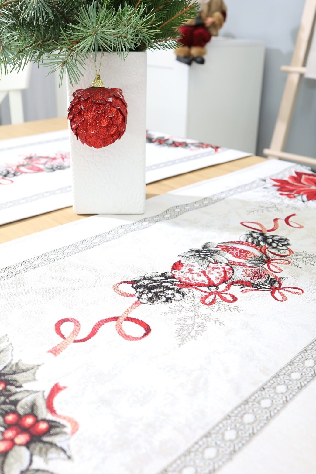 made of tapestries of delicate, decorative, luxurious and always fashionable. The table tracks decorate the interior, while the solid tapestries protect the table from hot spots, scratches and general deterioration of the table. When you want other, special table decorations, we invite you to purchase a fabric track from tapestries. This table track combines table wipes from the same collection. We invite you to see and choose a set for interior decoration. You can find table napkins here. Care: We recommend cleaning table tracks with dry chemical cleaning. In an automatic washing machine, the fabric can be washed at a temperature not exceeding 30 degrees without the use of bleach and chlorine-containing washing agents. Gobelenic tissue must be naturally dried, it is important not to dry, and cannot be dried in an automatic dryer. It is recommended to compare not more than 110 degrees. Made in the European Union. In reality, the shades of the products may differ slightly from those of the photographs due to different settings of the computer colours, brightness and darkness, contrast settings.