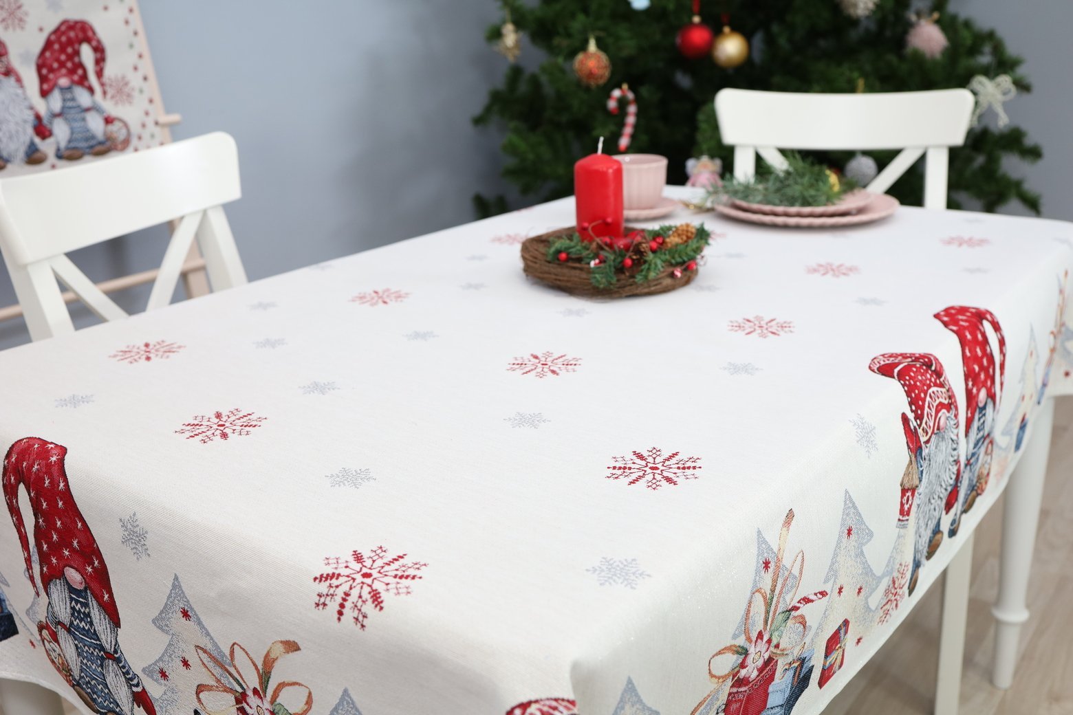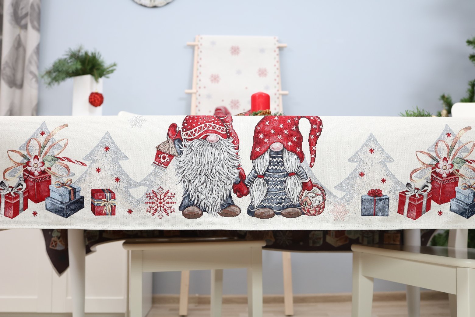 Decorative, elegant, solid tapestries Christmas table Two Dwarfs decorated with Christmas flower motifs. This is a wonderful, delicate and memorable Christmas present. This table is accompanied by table wipes, table tracks and decorative pillows from the same collection. We invite you to look at other items of this collection and choose a set to decorate the interior of the house according to your needs. You will find Christmas table napkins whereThe table tracks of different sizes are in this shelves, o decorative pillow covers where. Maintenance: It is recommended to clean two Dwarfs with dry chemical cleaning. In an automatic washing machine, the fabric can be washed at a temperature not exceeding 30 degrees without the use of bleach and chlorine-containing washing agents. Gobelenic tissue must be naturally dried, it is important not to dry, and cannot be dried in an automatic dryer. It is recommended to compare not more than 110 degrees. Made in the European Union. In reality, the shades of the products may differ slightly from those of the photographs due to different settings of the computer colours, brightness and darkness, contrast settings.