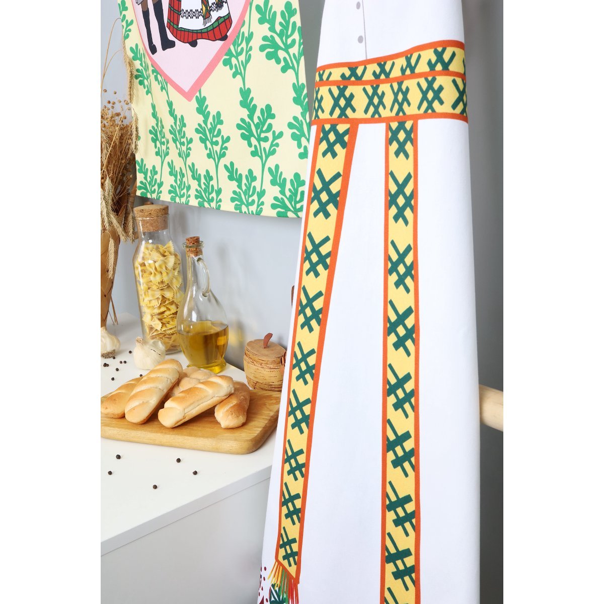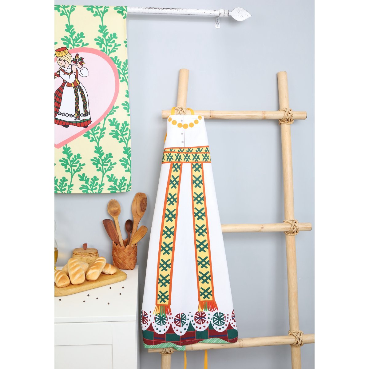 Our Lithuanian lady cotton kitchen apron is not only practical, but also a stylish addition to your kitchen. This apron is made of 100% cotton, ensuring not only lightness but also durability for long-term use. The apron is special because of its high-quality print, which not only decorates it but also remains unchanged for a long time.