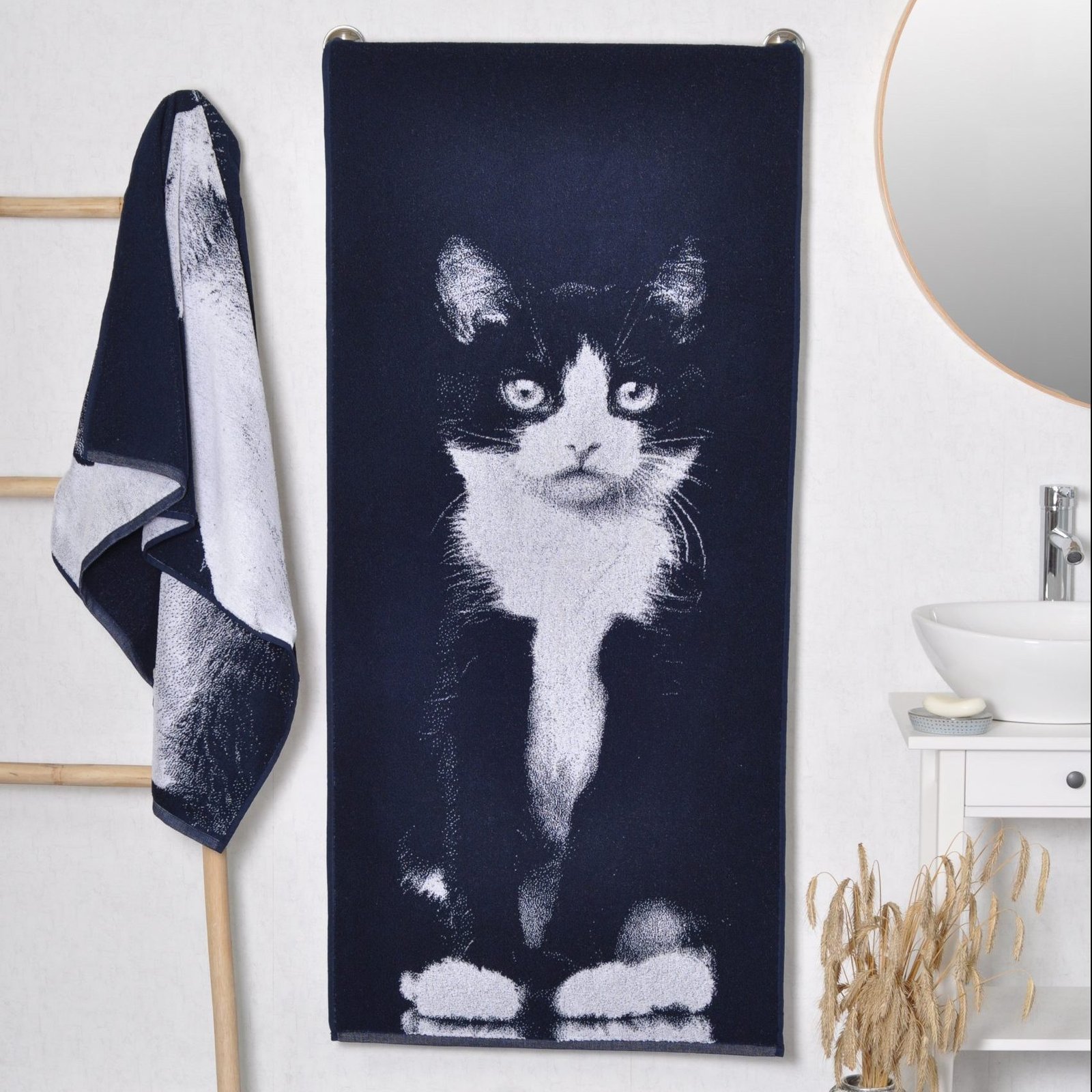 Cotton bath towel Black and White Cat is a great gift for every cat lover. These towels are natural and made of high quality materials.