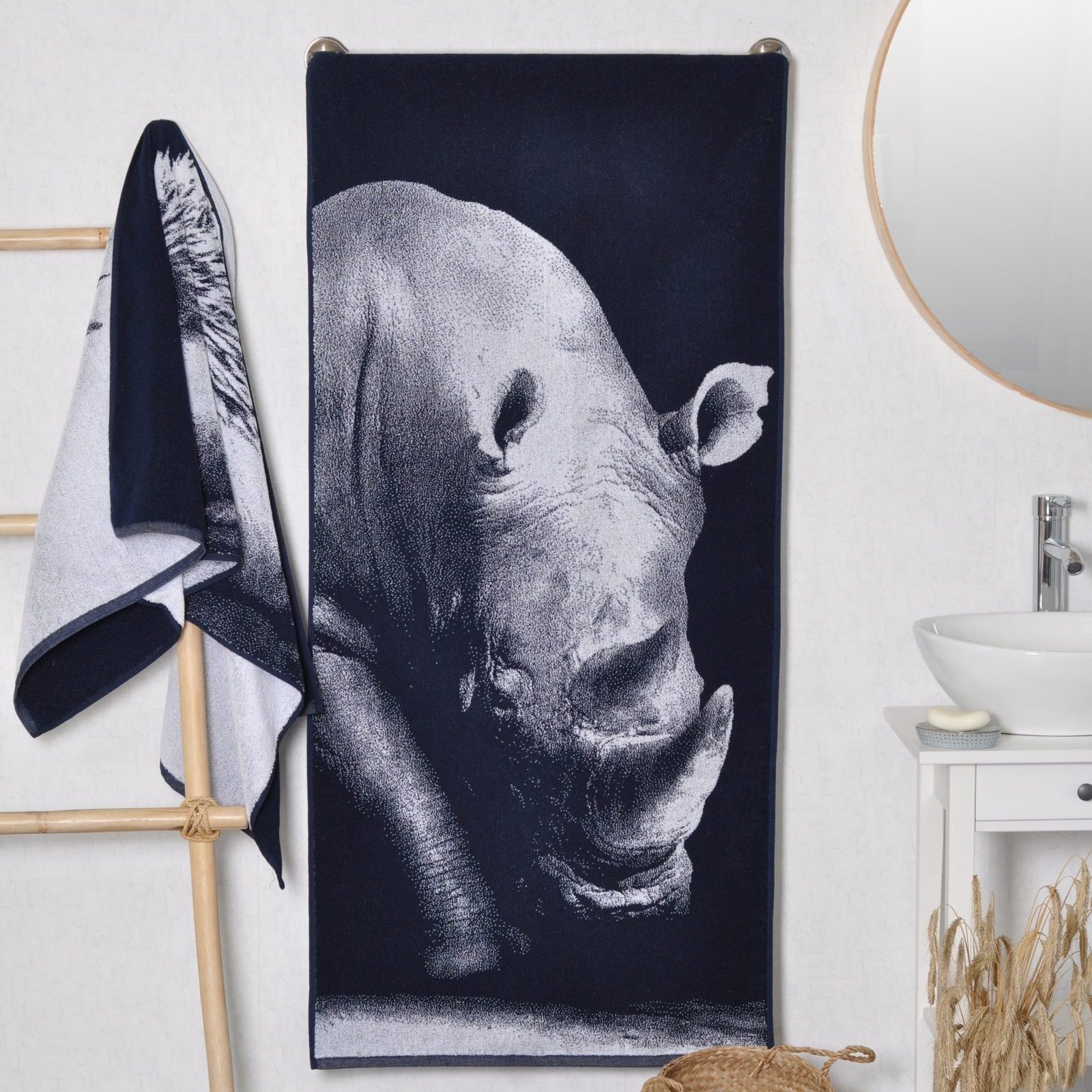 Care: We recommend washing towels in an automatic washing machine at a temperature not exceeding 40 degrees without the use of bleach and chlorine-containing washing agents. We advise to avoid softeners, especially those containing silicone, because the latter is injected into the fabric, towels do not absorb moisture so well. The towels can be dried in an automatic dryer at low temperatures. In the case of outdoor drying, direct sunlight should be avoided, as sunlight will eventually decay even the highest quality fabric. When comparing the towel, the maximum ironing temperature can be 150 ° С. Cotton towels are not recommended for dry cleaning. Made in Europe. More Bathroom towel Animals you will find where. You will find all the towels where.