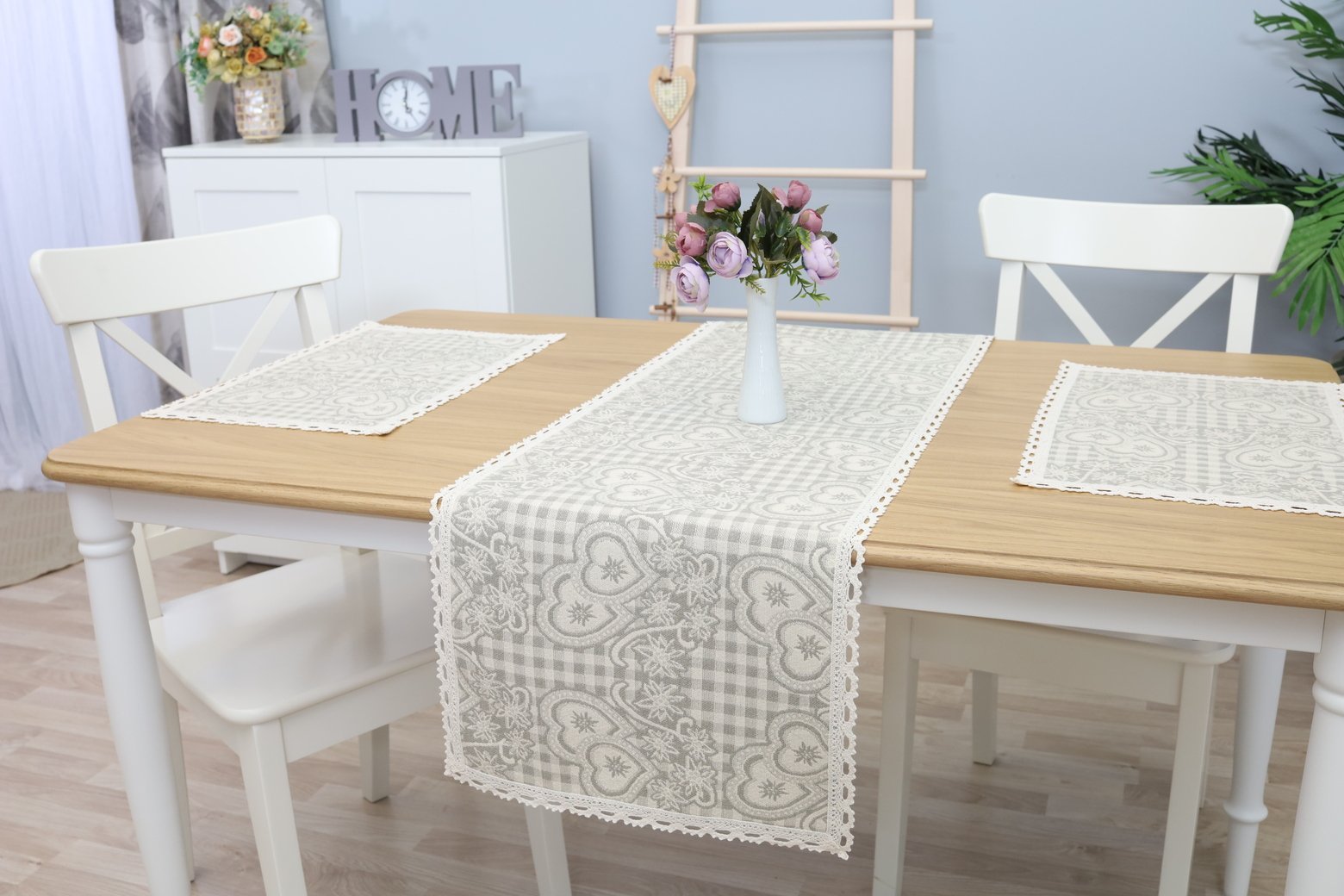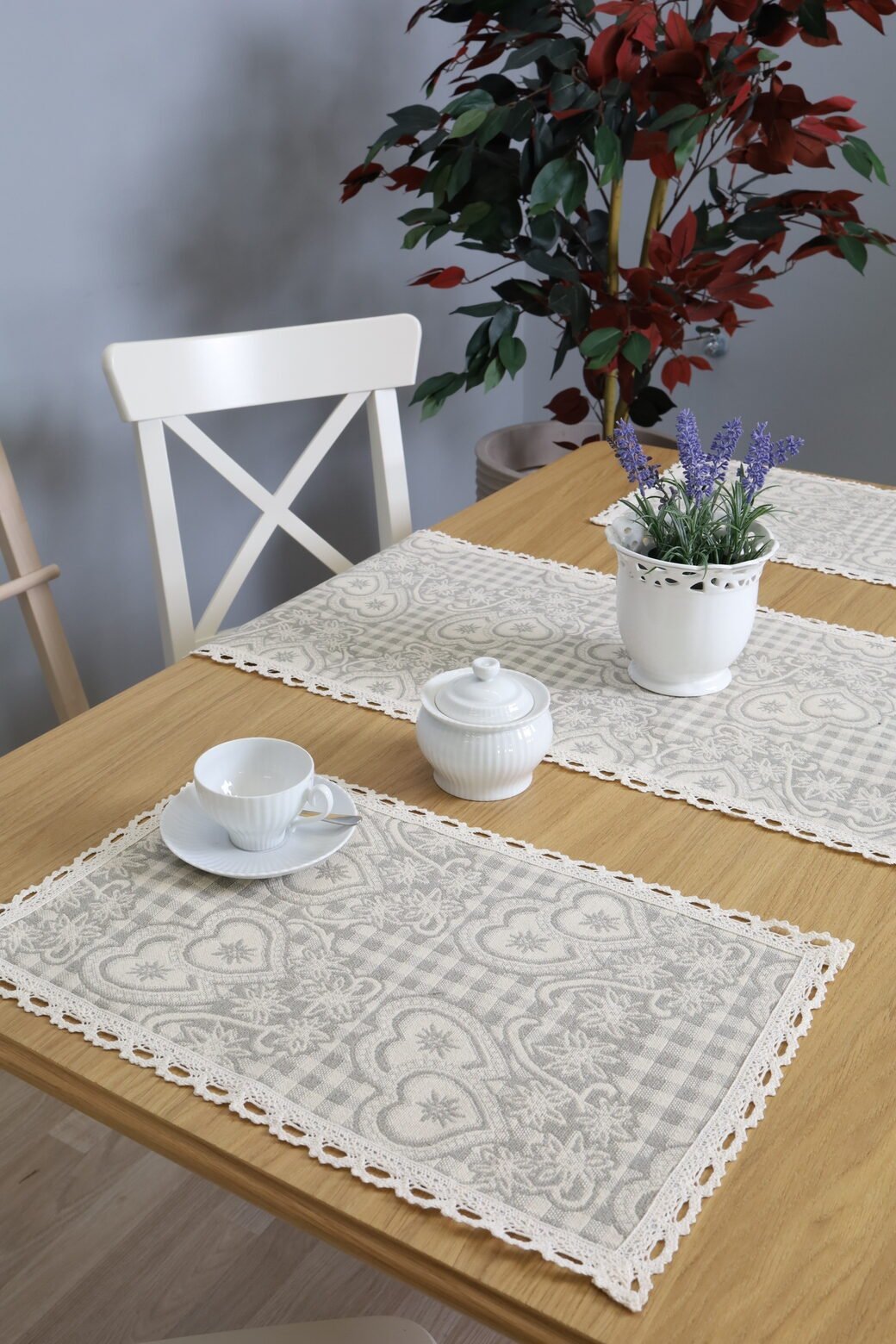 The feeling of coziness, simplicity and warmth that envelops you when you look at this line of products, the placemat Grey hearts, seems to take you back to your childhood home. The calm, natural colors and time-tested patterns woven into tablecloths, table runners, placemats, and aprons fit perfectly into everyday, practical interiors and decorate farmhouse spaces.