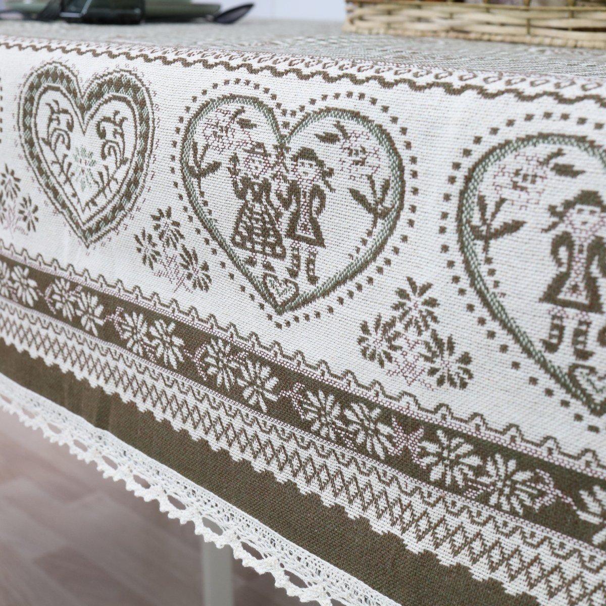 This tablecloth goes well with table placemats and table runners from the same collection. We invite you to browse other items in this collection and choose a set to decorate your home interior according to your needs. You can find table placemats here, and table runners of various sizes are available on this shelf.