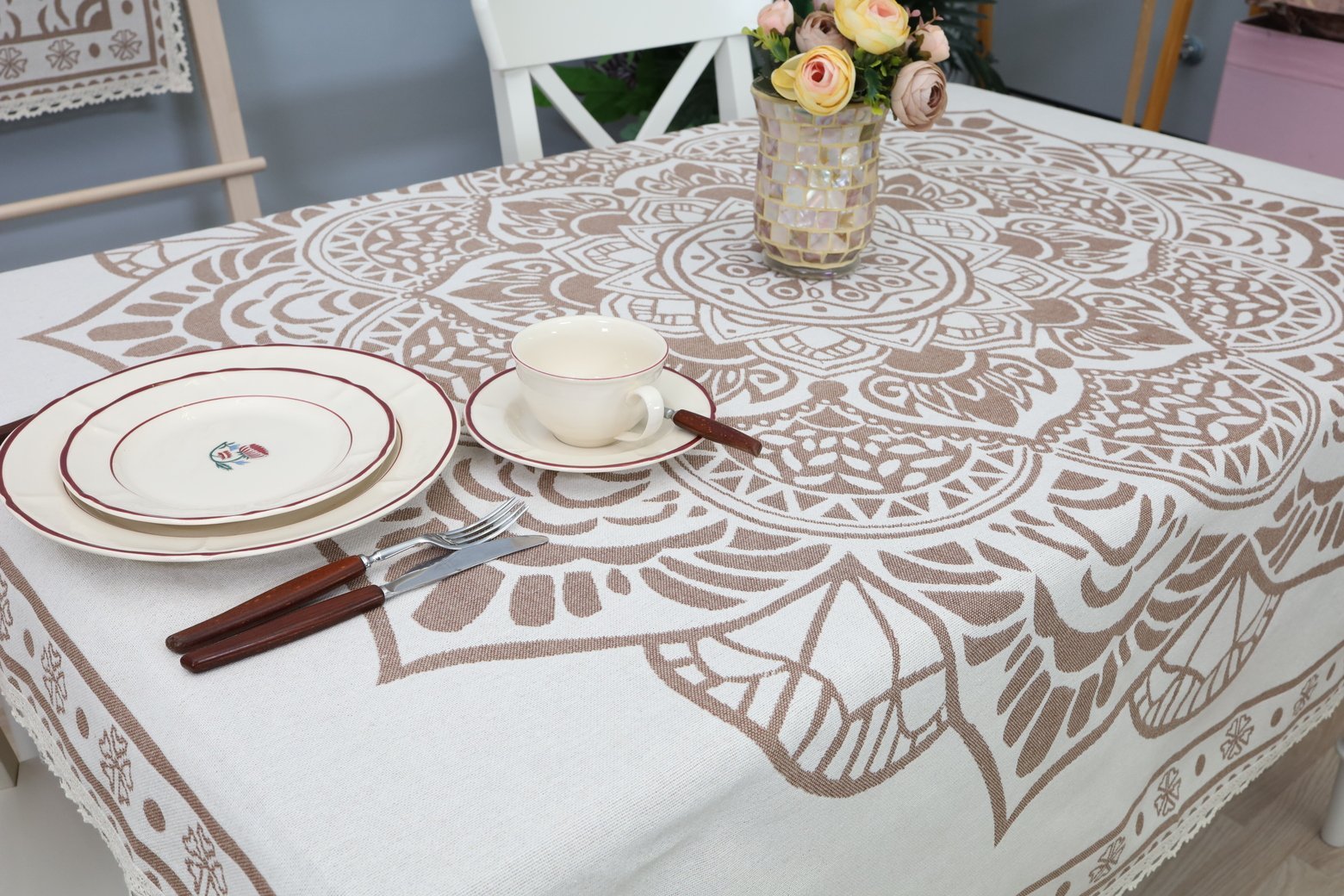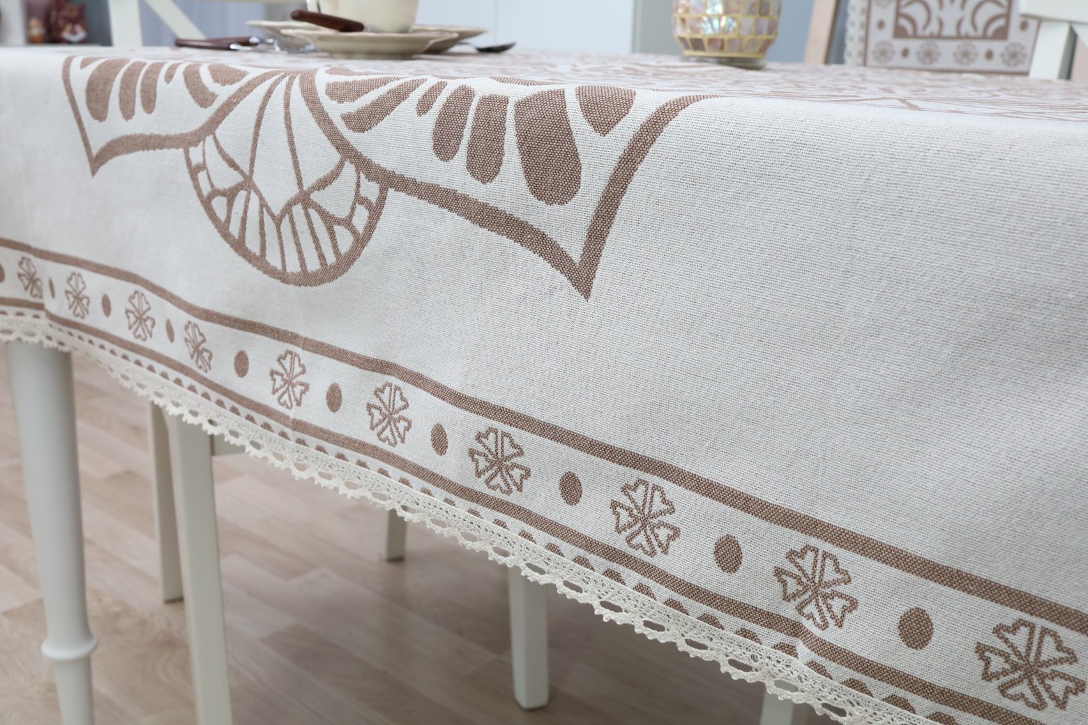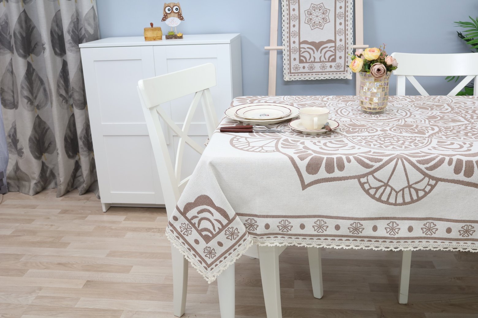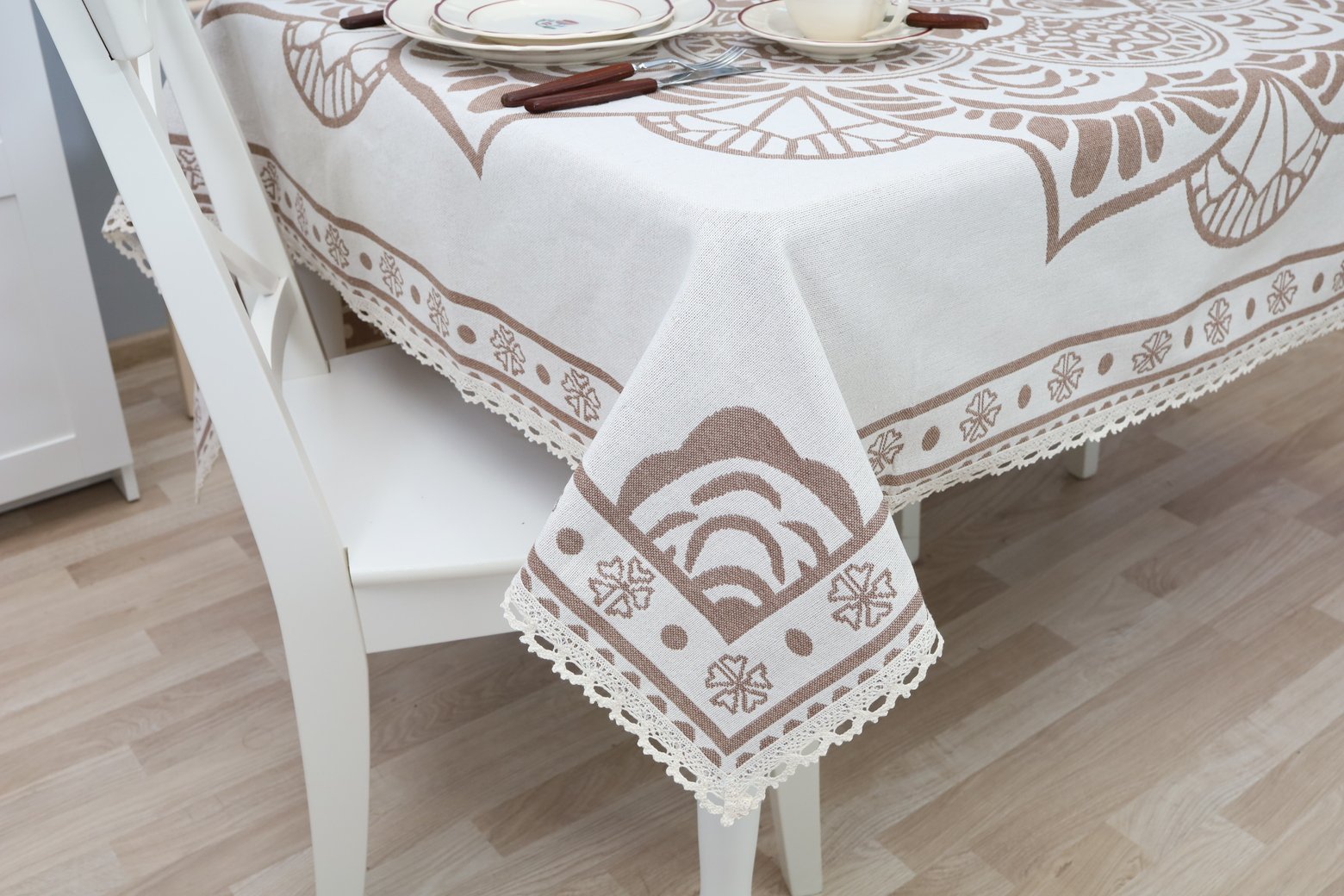 This tablecloth goes well with table placemats and table runners from the same collection. We invite you to browse other items in this collection and choose a set to decorate your home interior according to your needs. You can find table placemats here, and table runners of various sizes are available on this shelf.