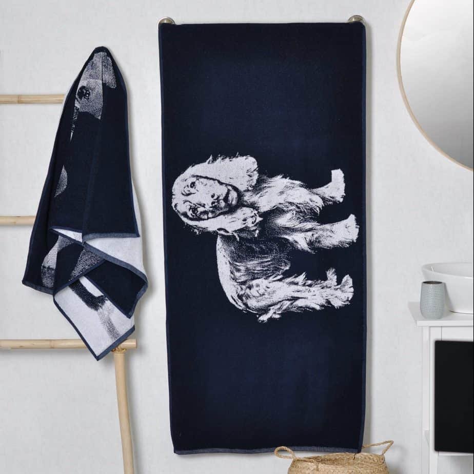 Cotton towel Cocker Spaniel is a great gift for every dog lover. These towels are natural and made of high quality materials. Care: We recommend washing towels in an automatic washing machine at a temperature not exceeding 40 degrees without the use of bleach and chlorine-containing washing agents. We advise to avoid softeners, especially those containing silicone, because the latter is injected into the fabric, towels do not absorb moisture so well. The towels can be dried in an automatic dryer at low temperatures. In the case of outdoor drying, direct sunlight should be avoided, as sunlight will eventually decay even the highest quality fabric. When comparing the towel, the maximum ironing temperature can be 150 ° С. Cotton towels are not recommended for dry cleaning. Made in Europe. More bath towels for dogs will find where. You will find all the towels where.