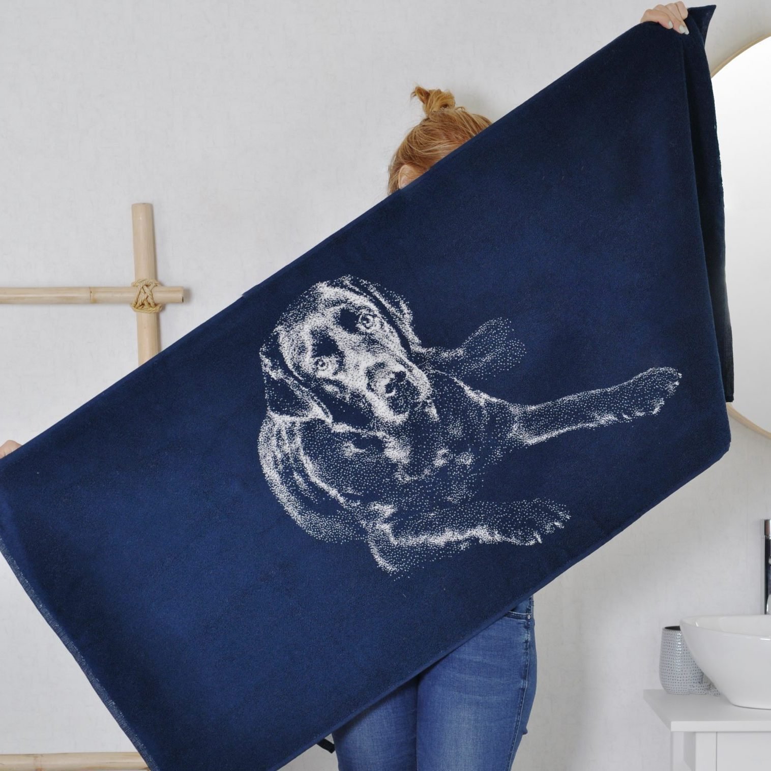 Cotton towel Labrador Retriever is a great gift for every dog lover. These towels are natural and made of high quality materials. Care: We recommend washing towels in an automatic washing machine at a temperature not exceeding 40 degrees without the use of bleach and chlorine-containing washing agents. We advise to avoid softeners, especially those containing silicone, because the latter is injected into the fabric, towels do not absorb moisture so well. The towels can be dried in an automatic dryer at low temperatures. In the case of outdoor drying, direct sunlight should be avoided, as sunlight will eventually decay even the highest quality fabric. When comparing the towel, the maximum ironing temperature can be 150 ° С. Cotton towels are not recommended for dry cleaning. Made in Europe. More bath towels for dogs will find where. You will find all the towels where.