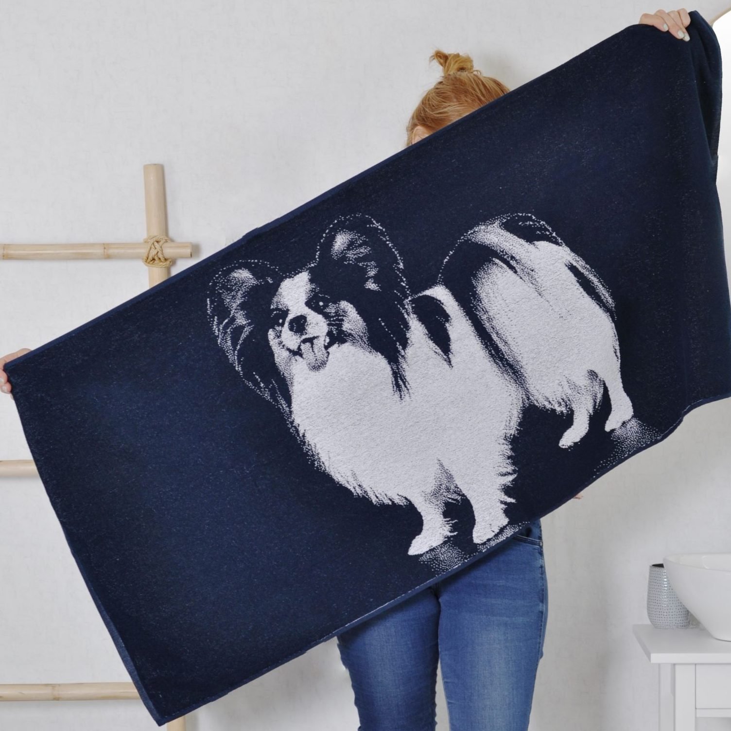 Cotton towel Papillon is a great gift for every dog lover. These towels are natural and made of high quality materials. Care: We recommend washing towels in an automatic washing machine at a temperature not exceeding 40 degrees without the use of bleach and chlorine-containing washing agents. We advise to avoid softeners, especially those containing silicone, because the latter is injected into the fabric, towels do not absorb moisture so well. The towels can be dried in an automatic dryer at low temperatures. In the case of outdoor drying, direct sunlight should be avoided, as sunlight will eventually decay even the highest quality fabric. When comparing the towel, the maximum ironing temperature can be 150 ° С. Cotton towels are not recommended for dry cleaning. Made in Europe. More bath towels for dogs will find where. You will find all the towels where.