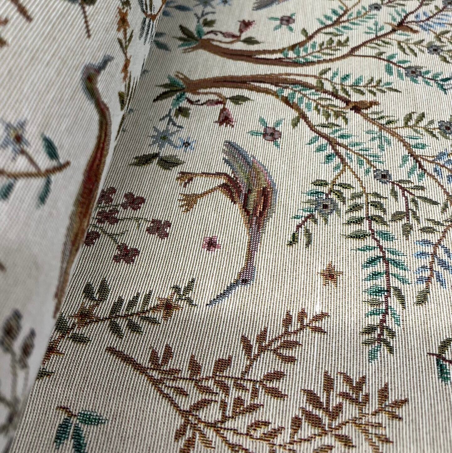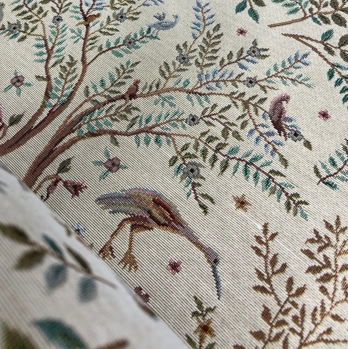 • Tissue properties: This fabric is characterized by a very detailed woven design with natural motives. It shows the branches of trees, Leaves, flowers and birds, which give Ducks a classic, vintage or traditional style.