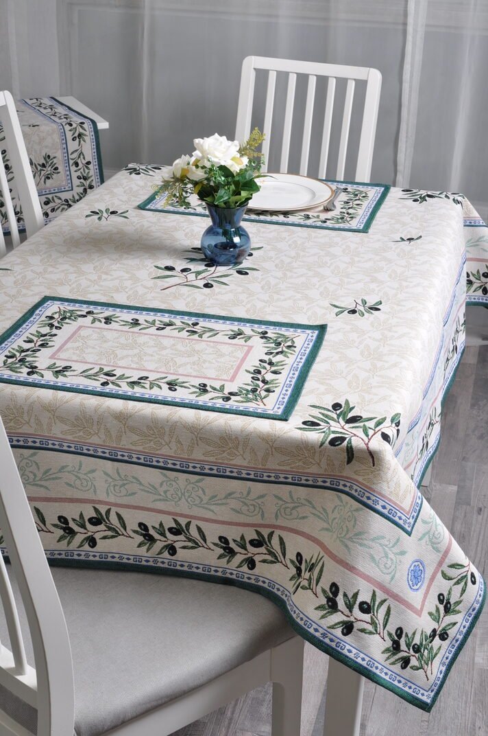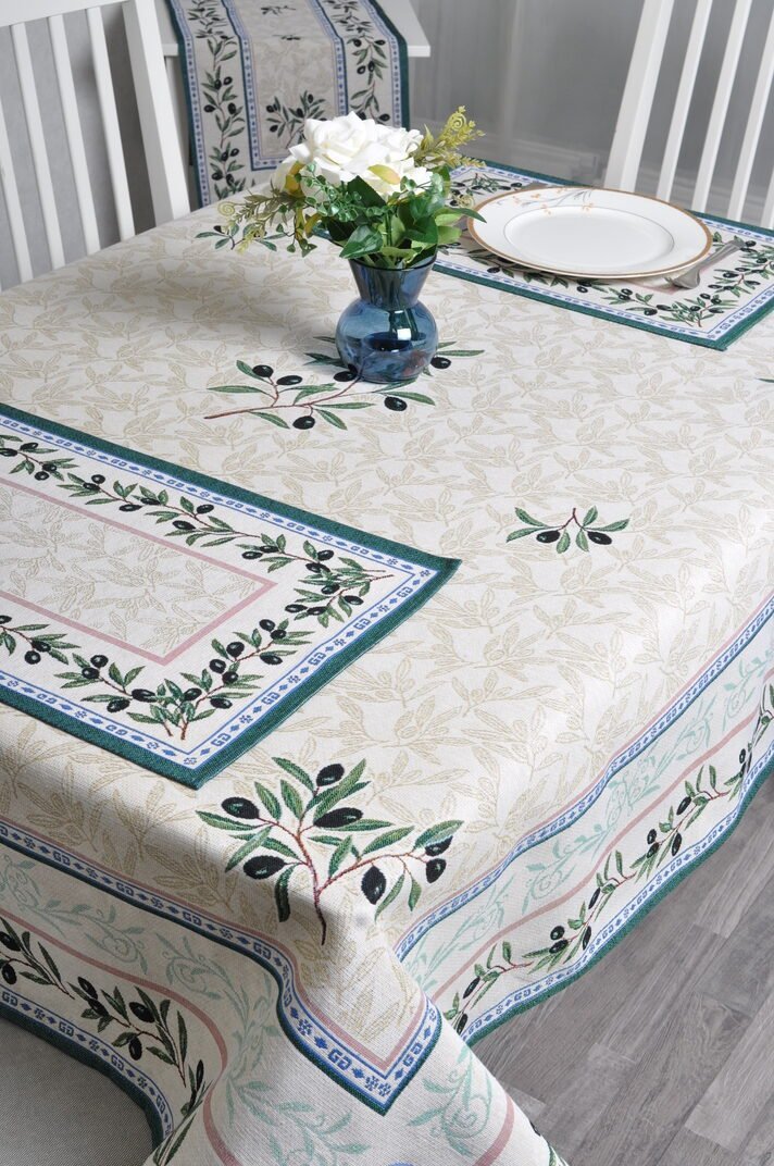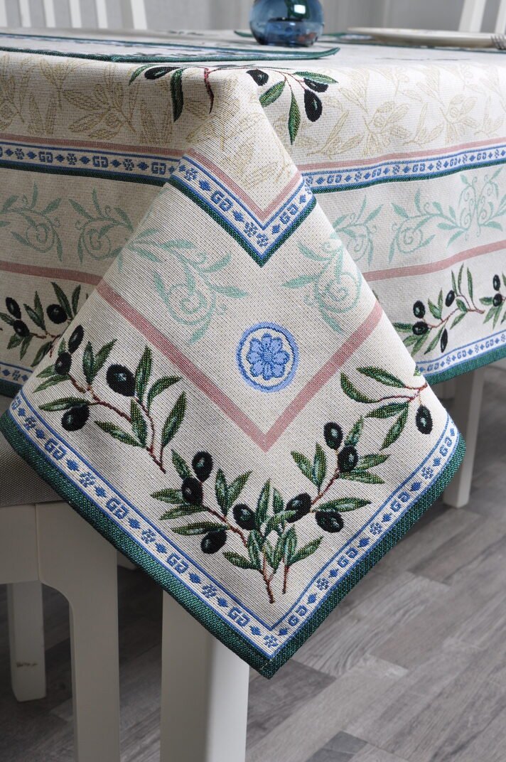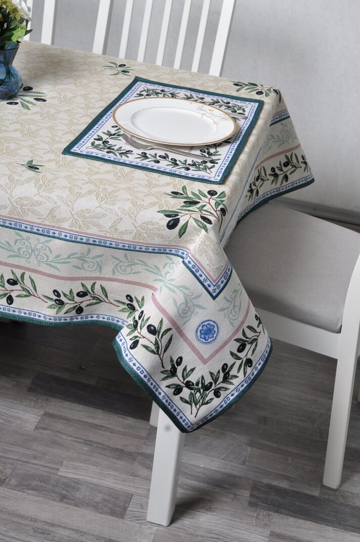 A luxurious, elegant jacquard tablecloth Black olives is made of sturdy tapestry fabric. It is a high-quality, subtle, and memorable gift.