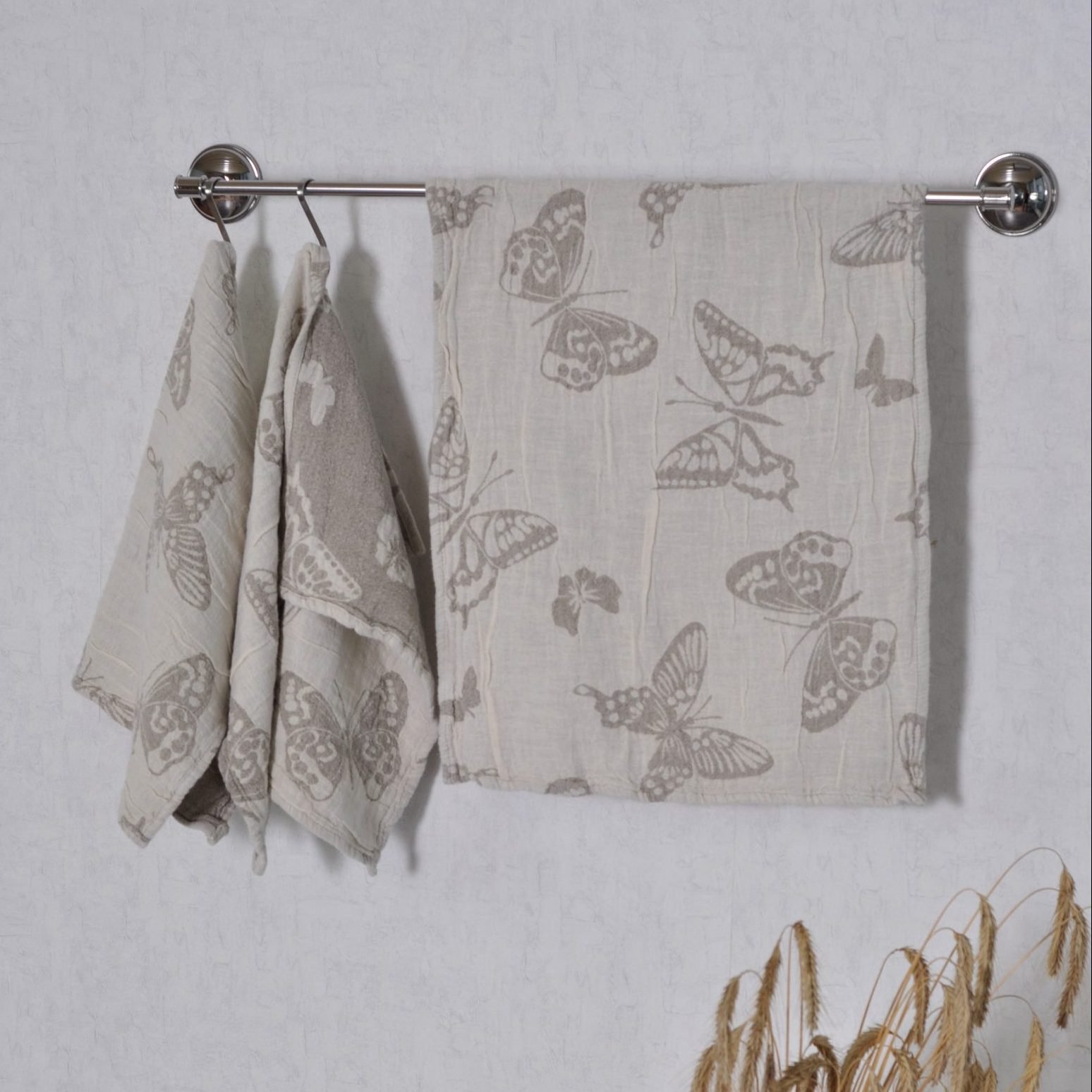 Grey kitchen linen towel Butterflies