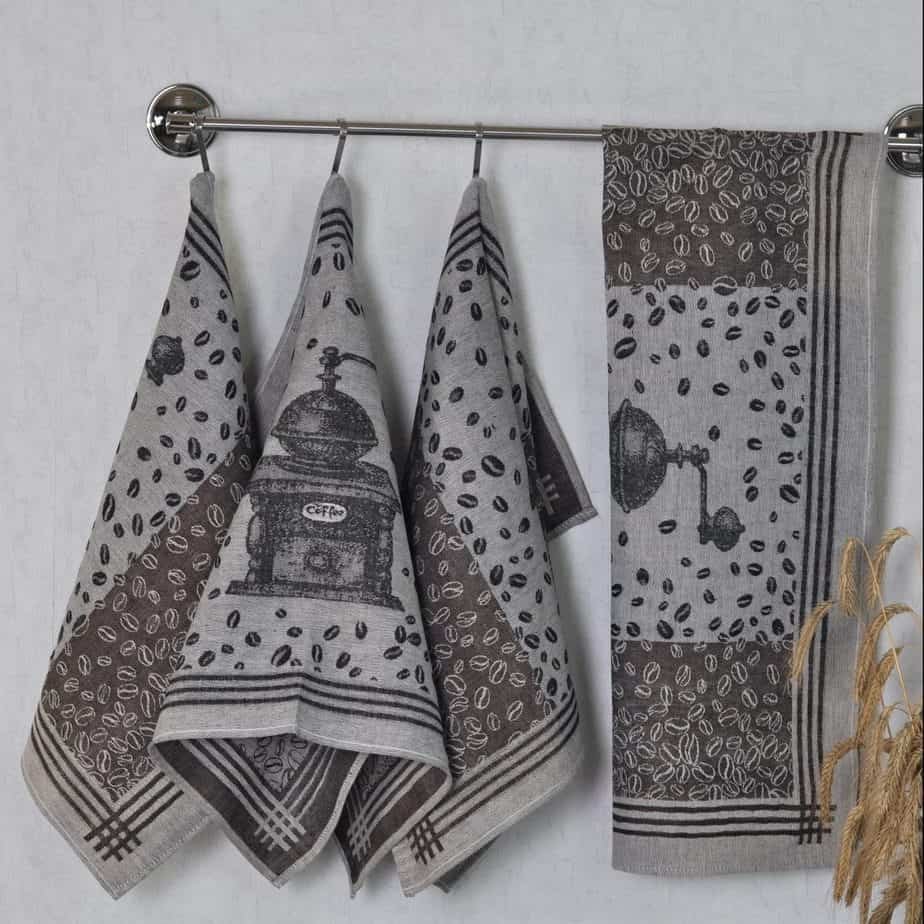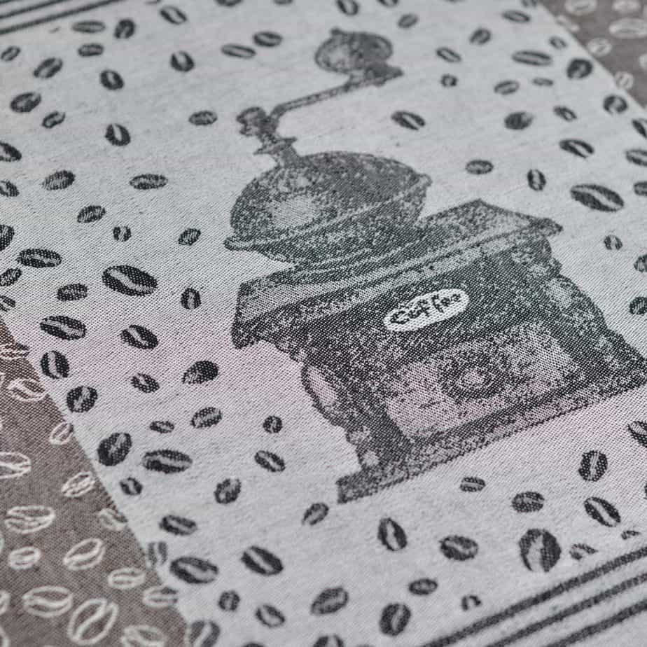Kitchen linen towel Coffee with coffee grinder and coffee bean motifs.
