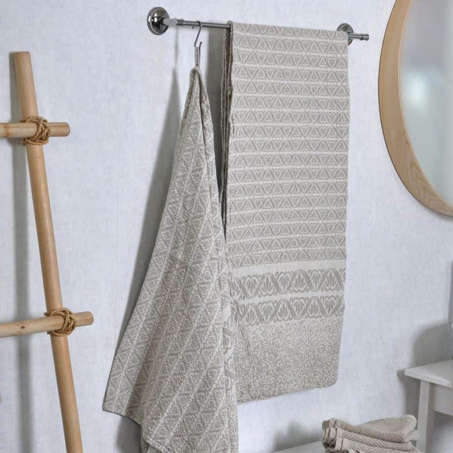 aesthetic, elegant natural fiber linen towel. This towel very absorbs moisture, is soft and pleasant to touch, as well as it can become a great bathroom accent. Flax is considered one of the oldest textile types in the world. It is claimed that it is flax that forms the best microclimate for the skin, because it is air-conductive, absorbs moisture and sweat and dries quickly. This towel: