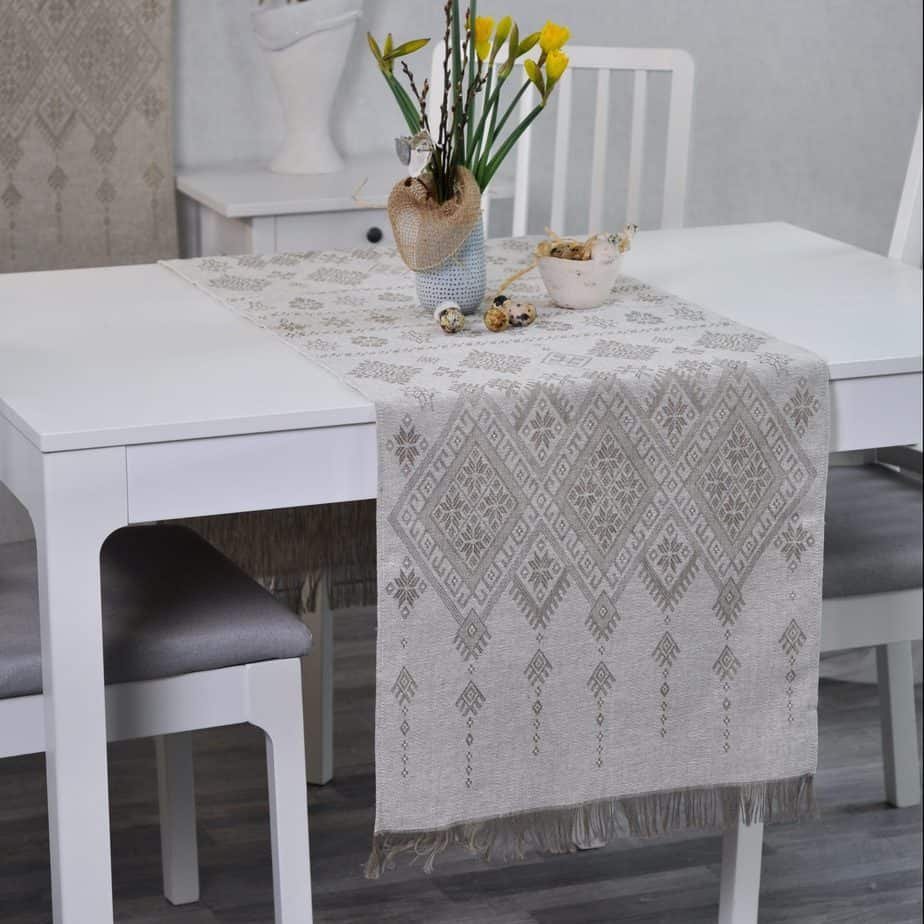 This beautiful and elegant gray linen table runner National patterns makes for a wonderful table decoration.