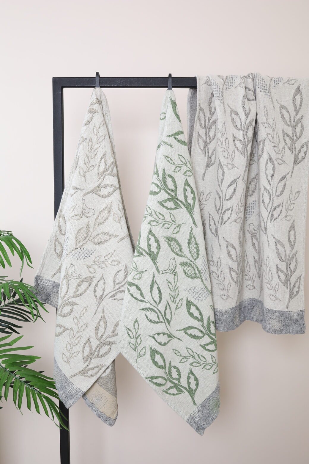 Linen Towel Birds – aesthetic, elegant natural fiber Linen Towel. This towel very absorbs moisture, is soft and pleasant to touch, as well as it can become a great bathroom accent. Flax is considered one of the oldest textile types in the world. It is claimed that it is flax that forms the best microclimate for the skin, because it is air-conductive, absorbs moisture and sweat and dries quickly. This towel: