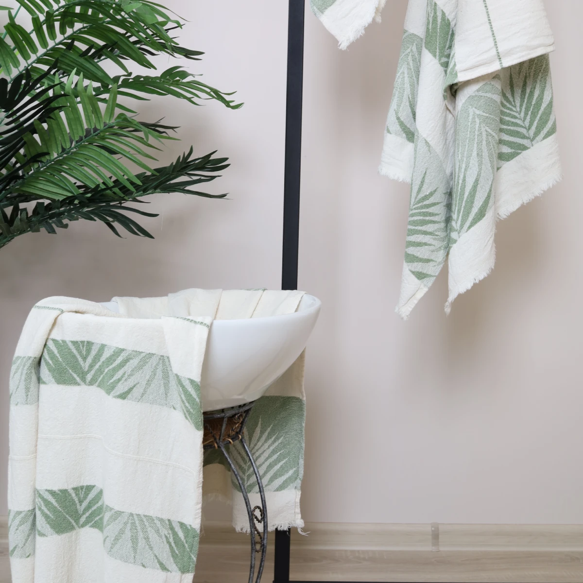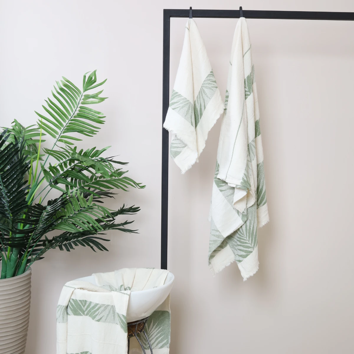 Linen Towel Fern – aesthetic, elegant natural fiber Linen Towel. This towel very absorbs moisture, is soft and pleasant to touch, as well as it can become a great bathroom accent. Flax is considered one of the oldest textile types in the world. It is claimed that it is flax that forms the best microclimate for the skin, because it is air-conductive, absorbs moisture and sweat and dries quickly. This towel: