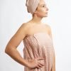 Waffle pink Colors female sauna apron for cotton and linen fabric She likes sauna, naturality and comfort. Stitched at the chest with wider rubber, adjusting the width, length to several bath aprons are designed to maximize the harmonisation of the beneficial properties of the fabric and ease of wear. This sauna apron: