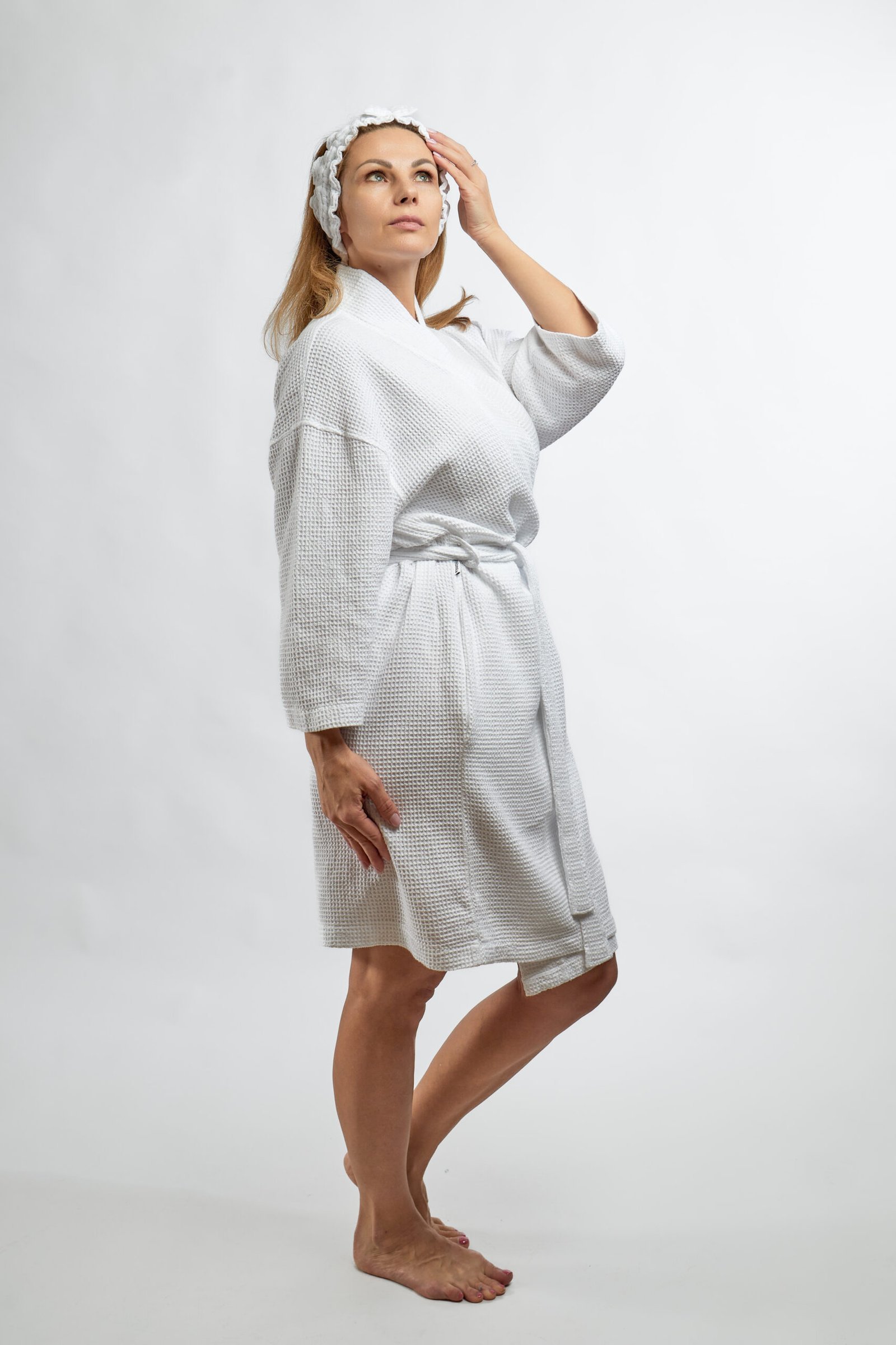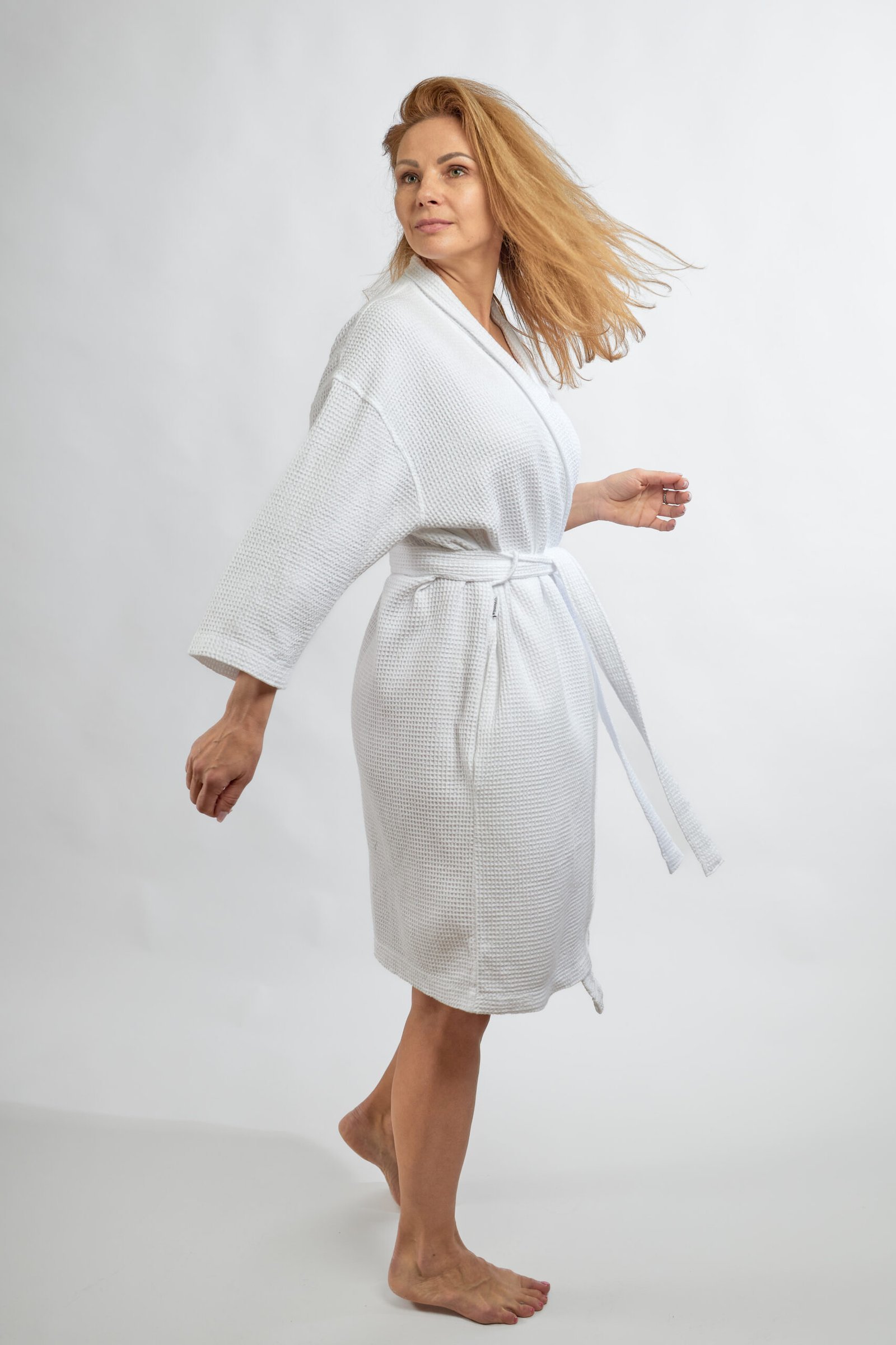 Cotton white Colors’ bathrobe with two pockets, with a girdle-tied belt, will particularly like those who like natural, cosy soft products.
