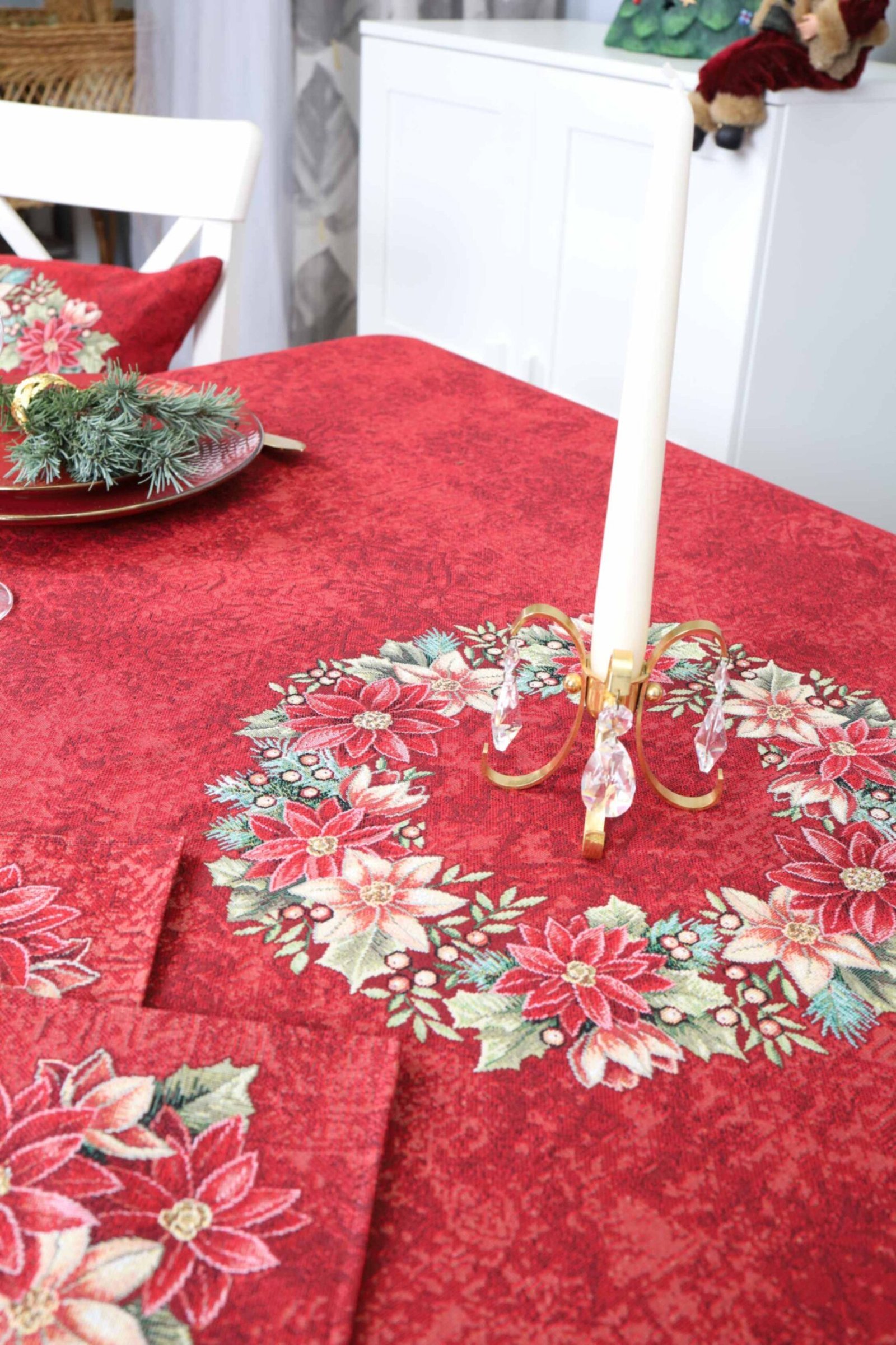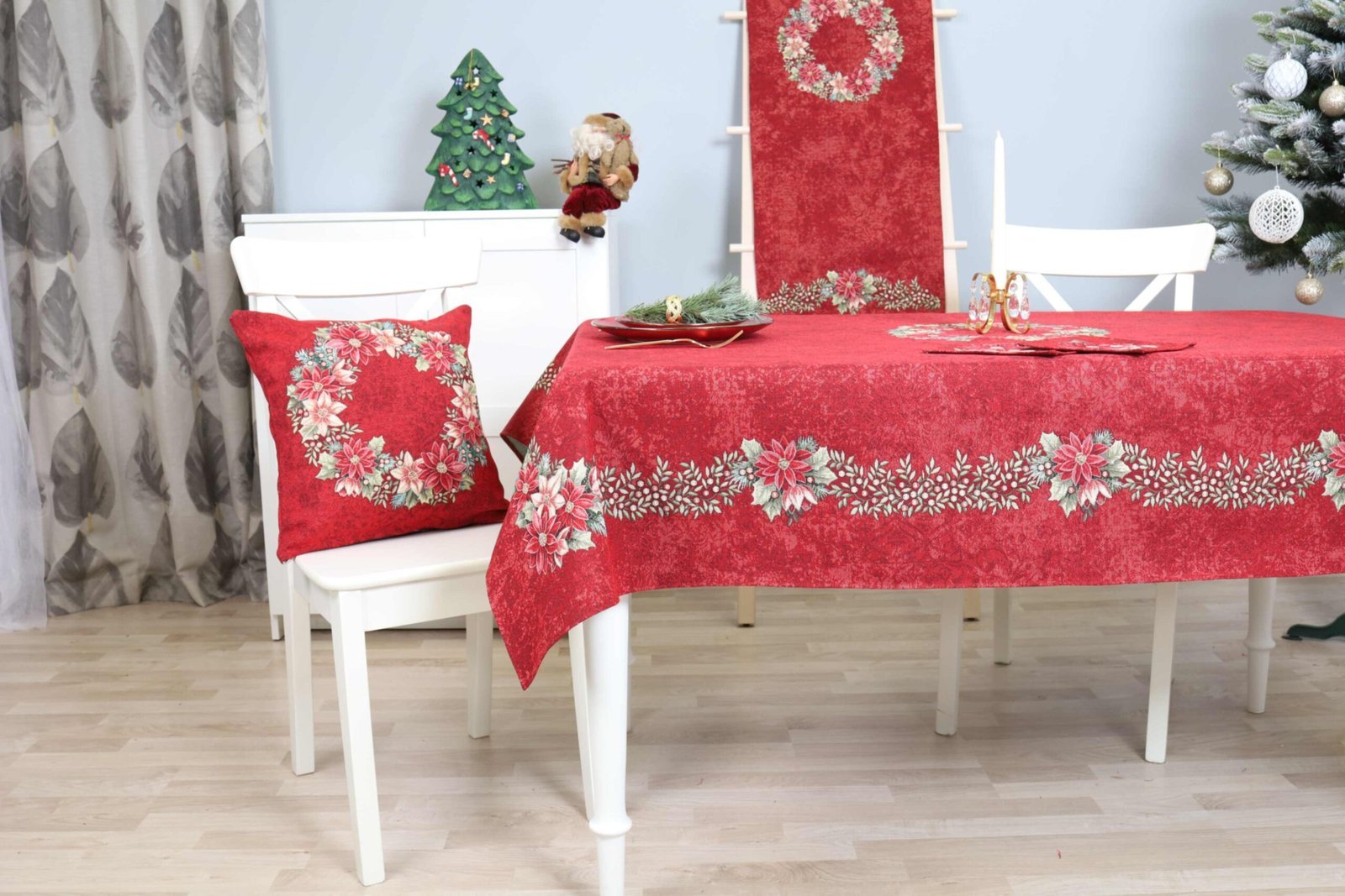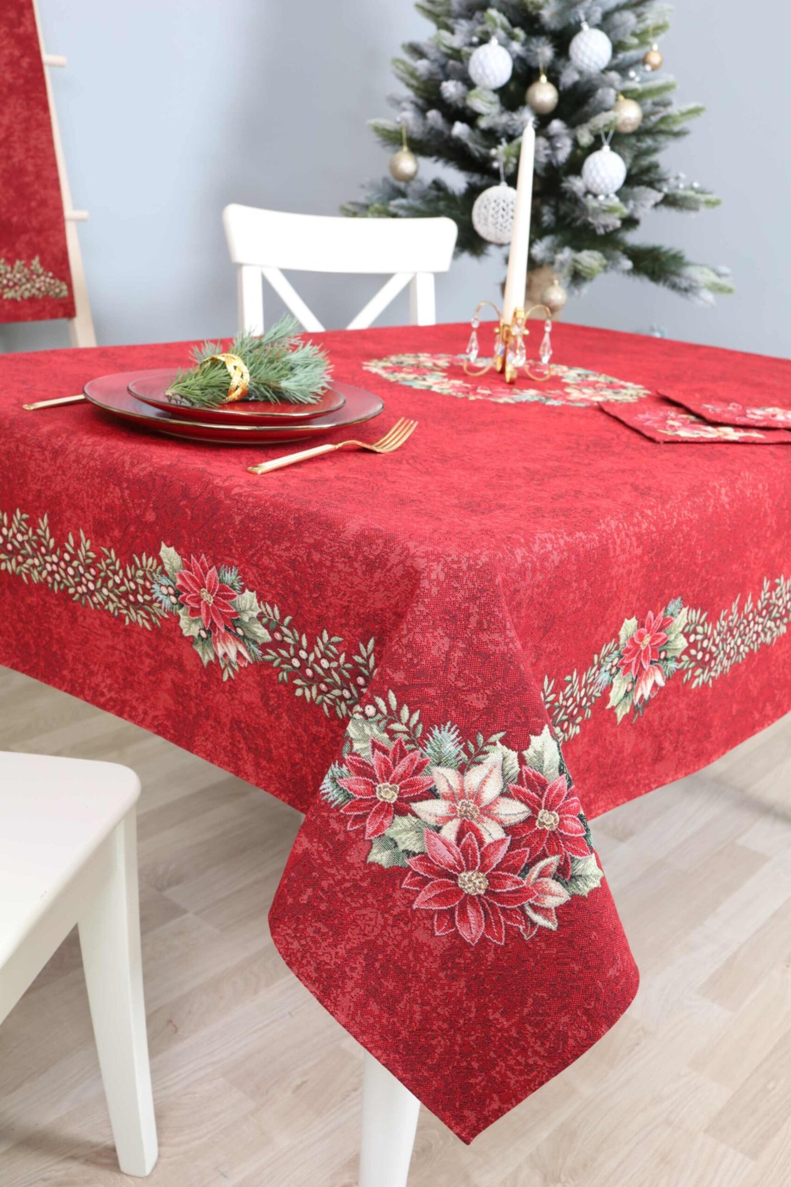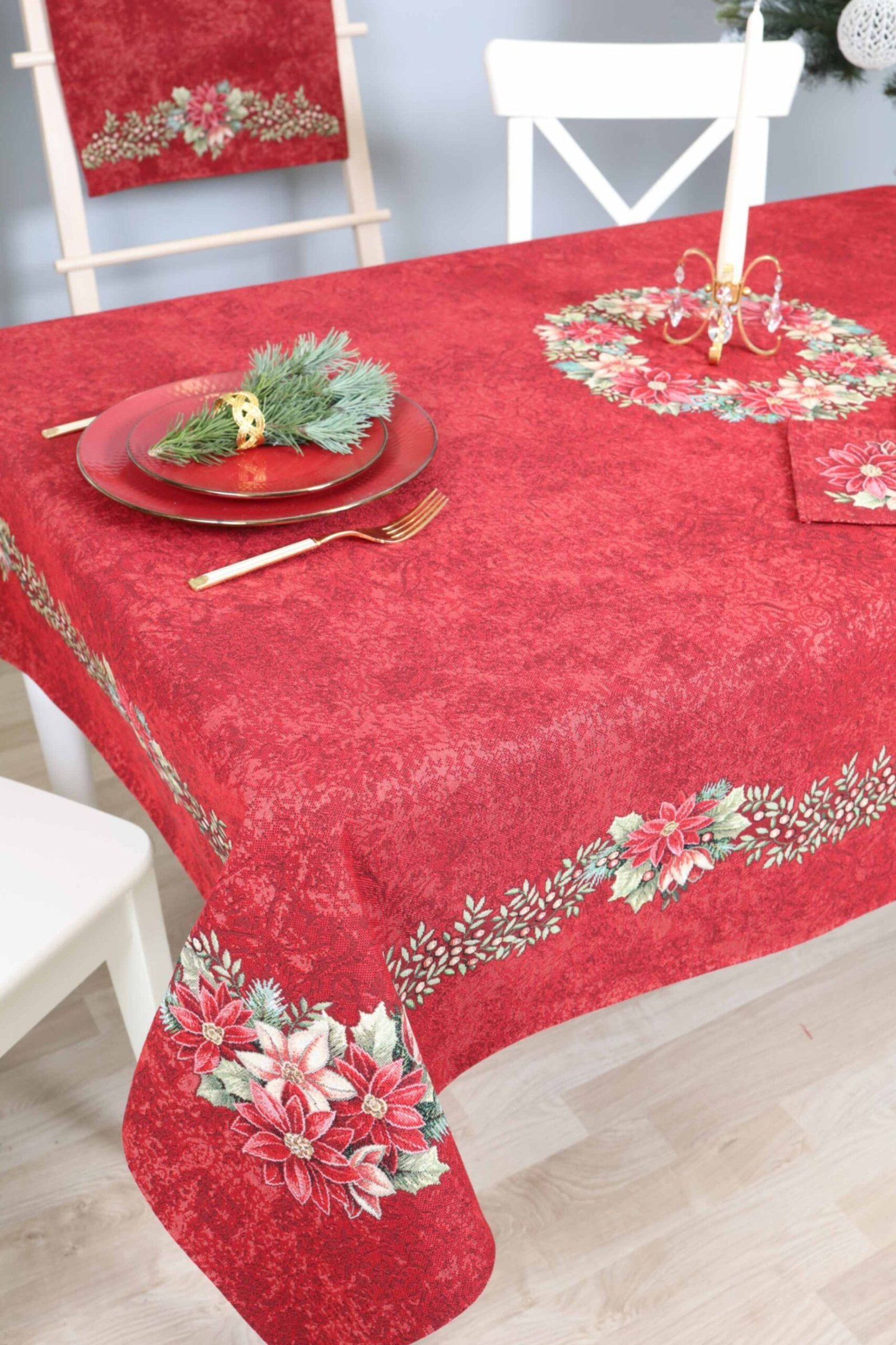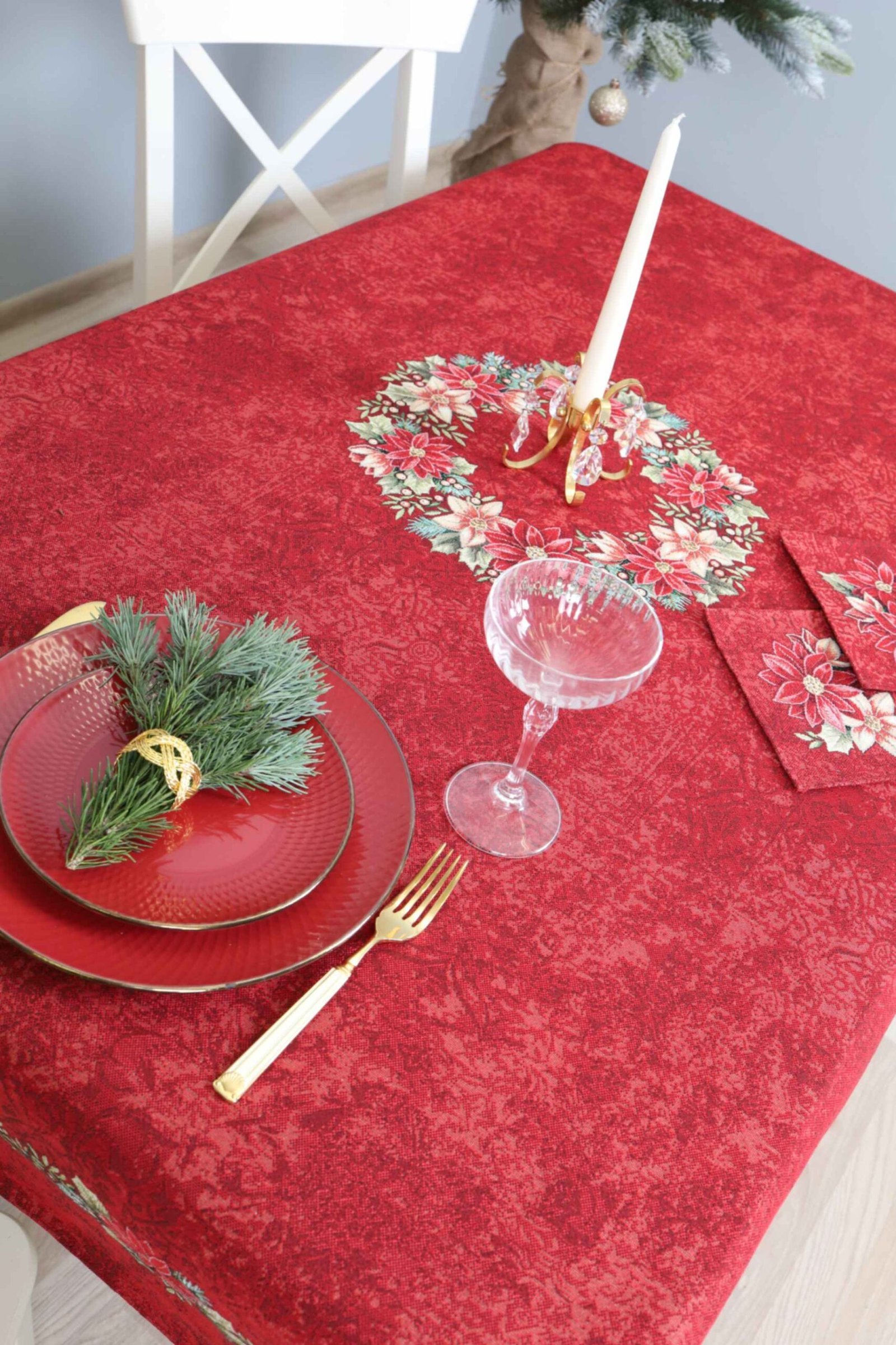 Red Christmas table Poinsettia Wreath