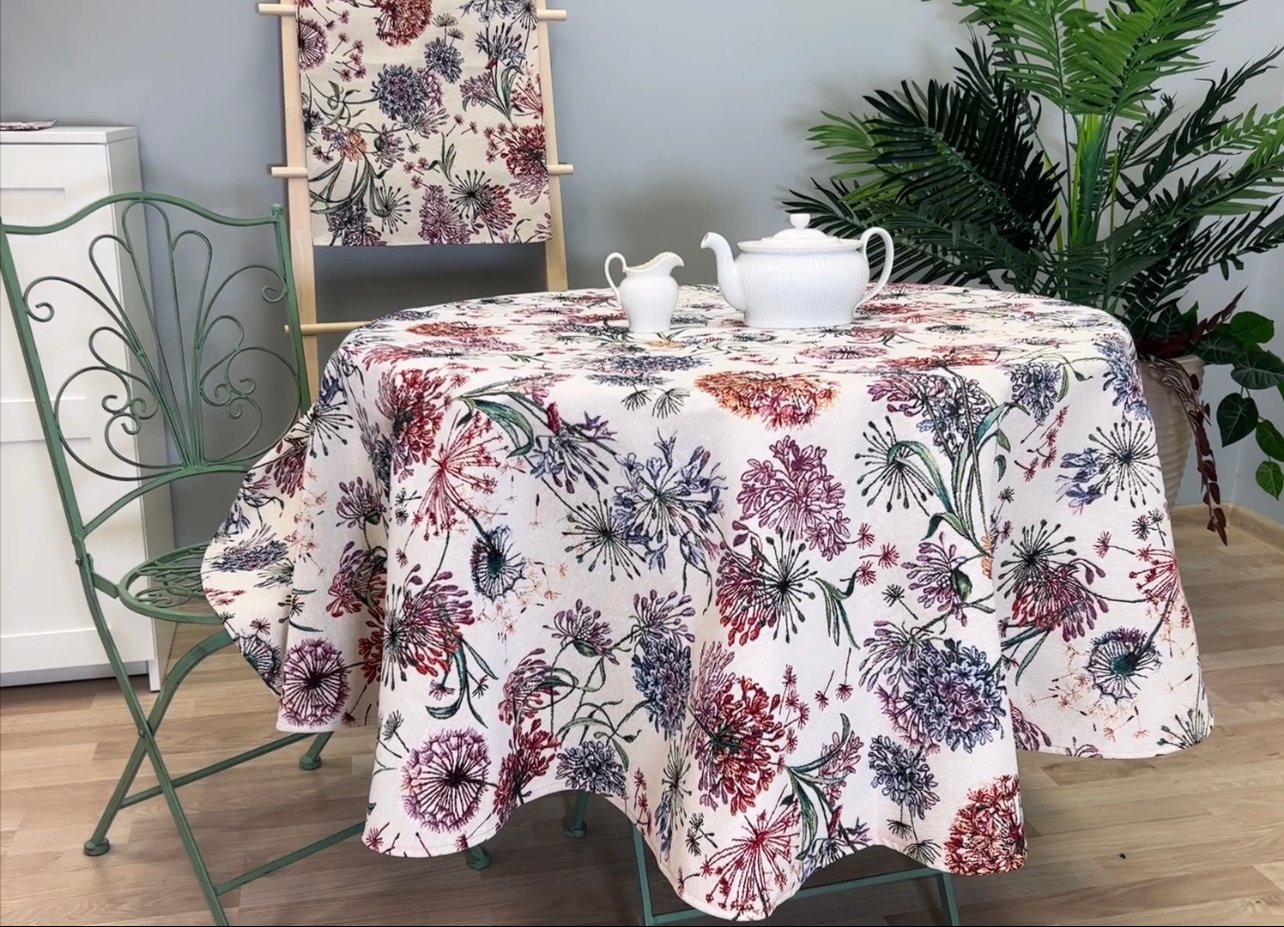 This round tablecloth goes well with table placemats, table runners and decorative cushions from the same collection. We invite you to browse other items in this collection and choose a set to decorate your home interior according to your needs.