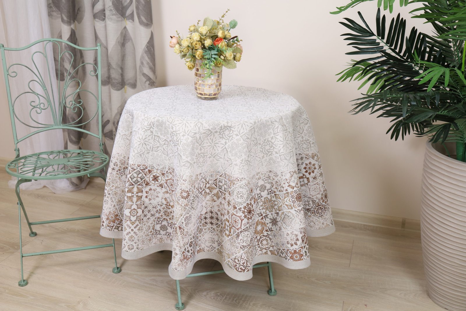 This round tablecloth goes well with table placemats, table runners and decorative cushions from the same collection. We invite you to browse other items in this collection and choose a set to decorate your home interior according to your needs.