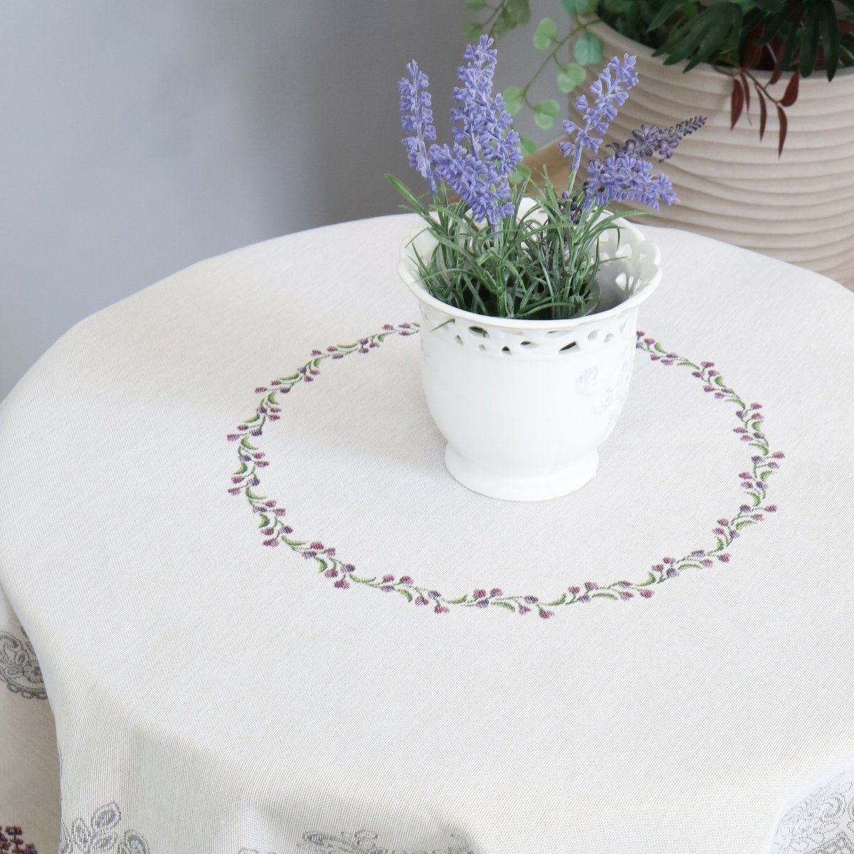 Round tablecloth Providence lavenders. It is a high-quality, subtle and memorable gift.