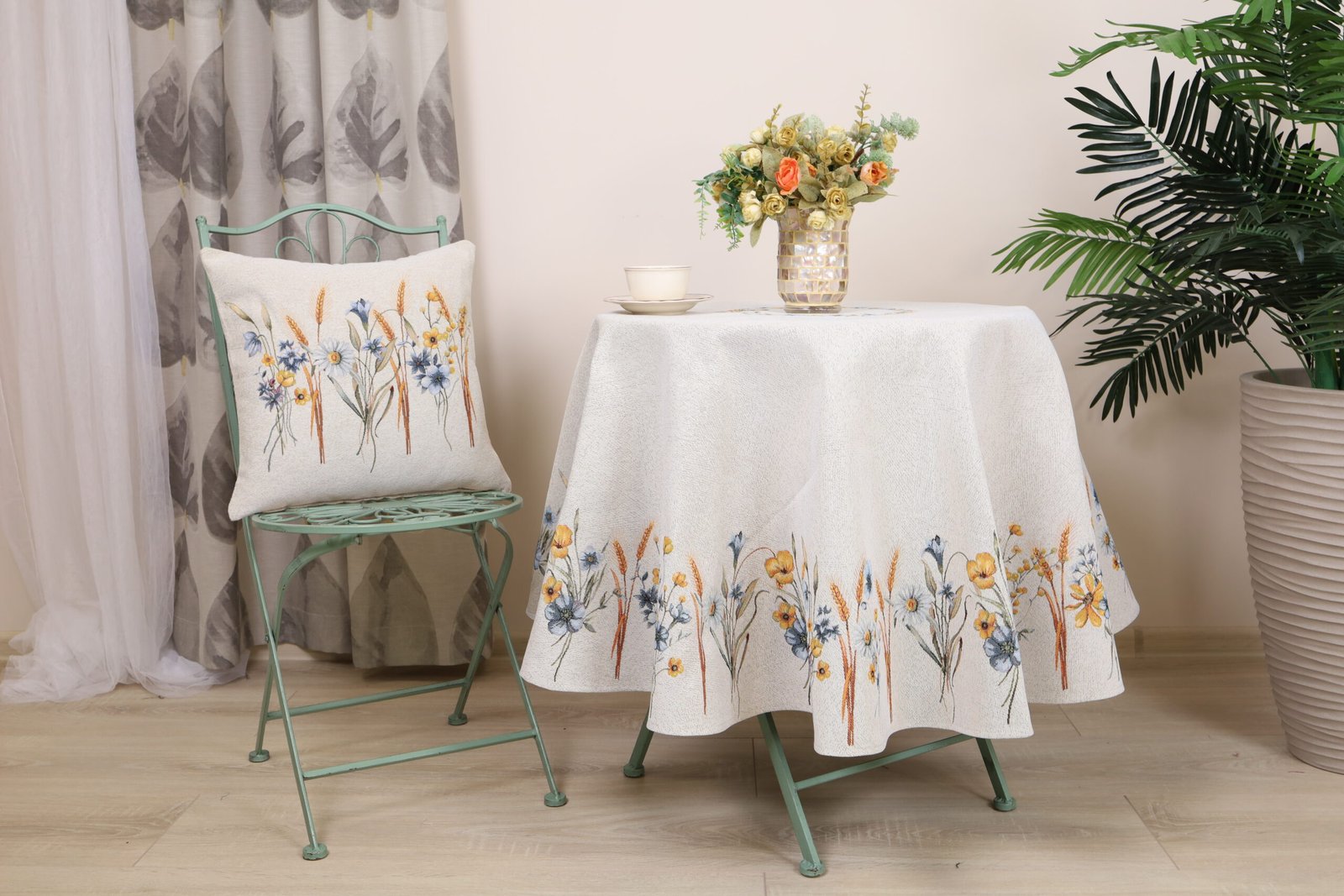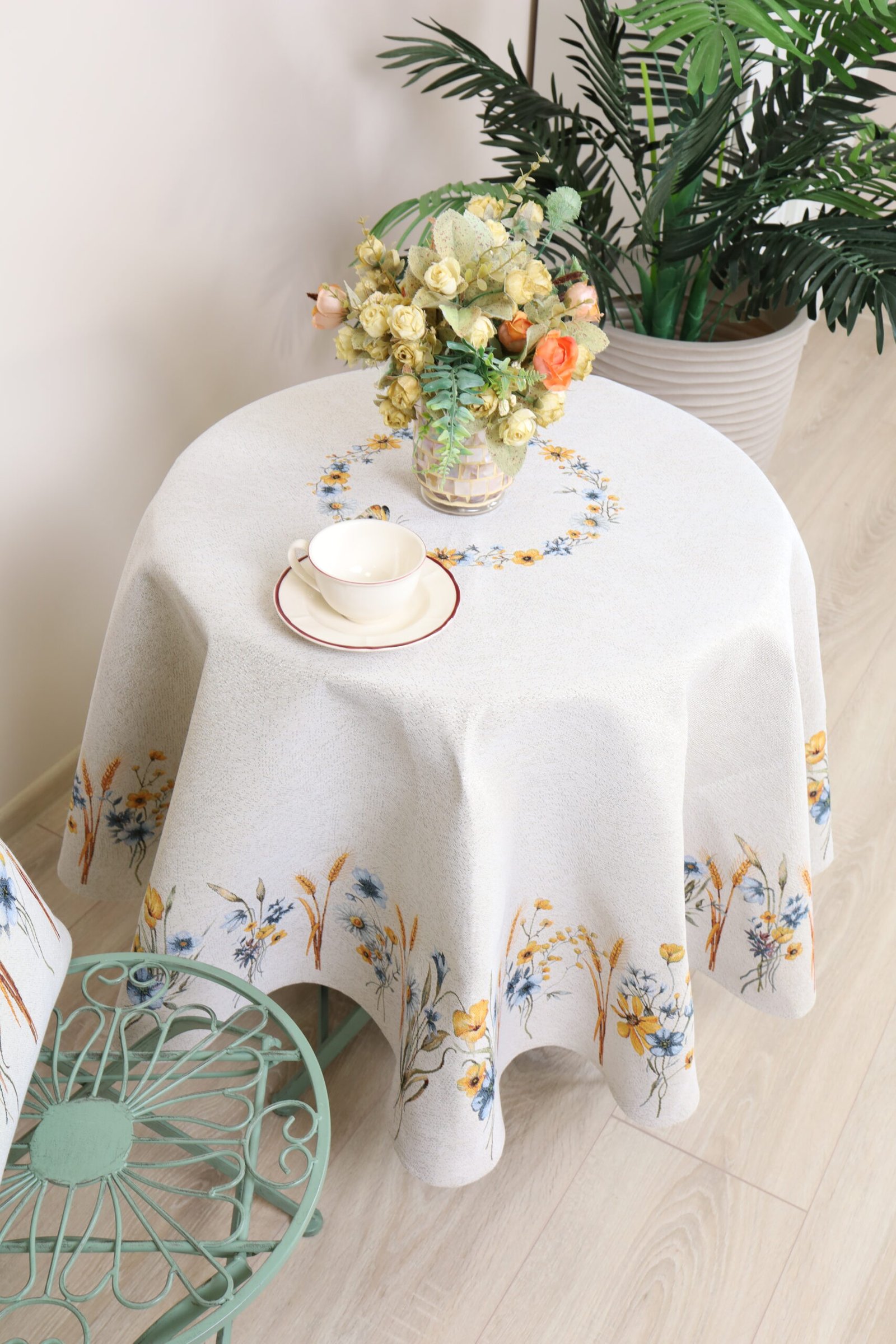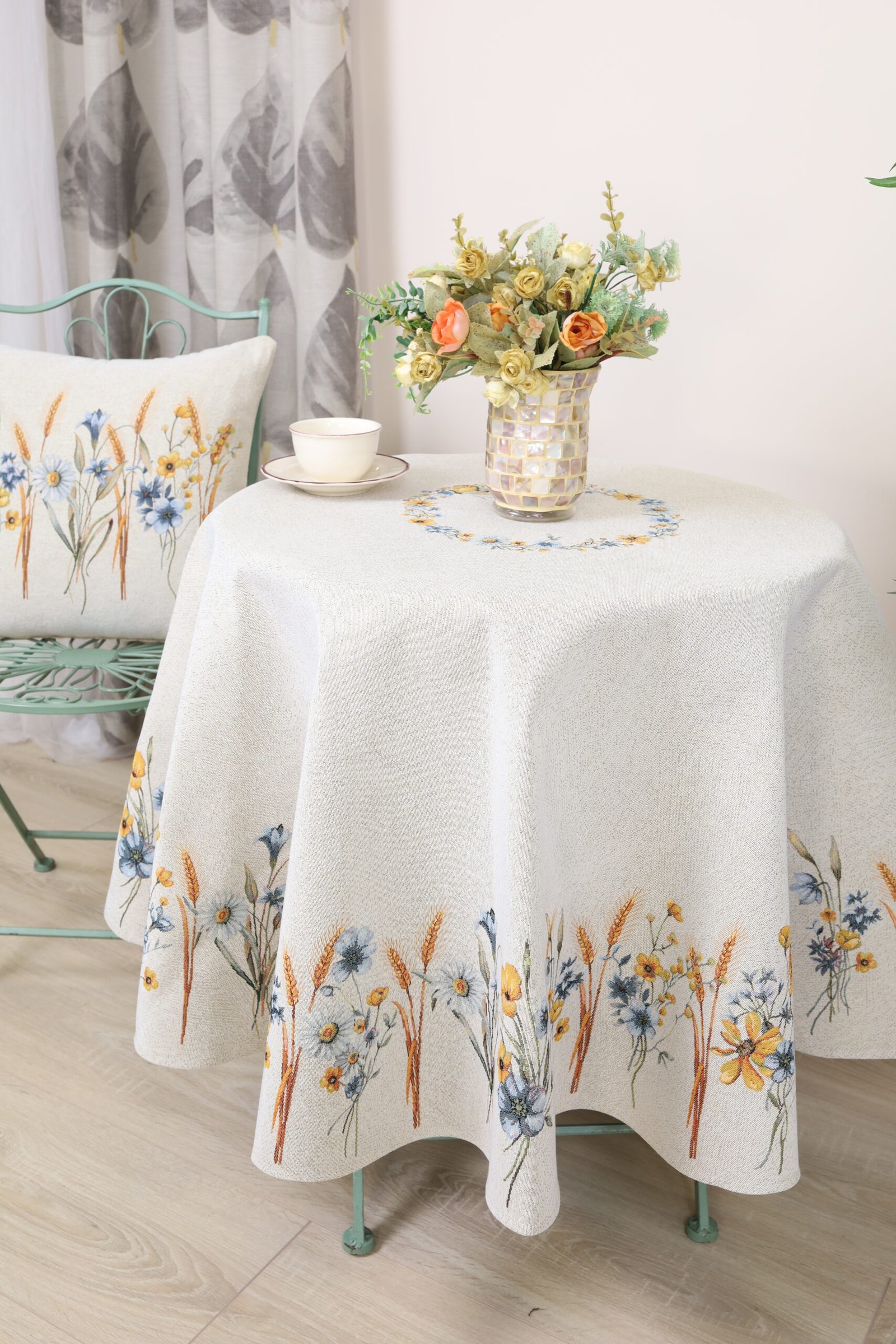 This round tablecloth goes well with table placemats, table runners and decorative cushions from the same collection. We invite you to browse other items in this collection and choose a set to decorate your home interior according to your needs.