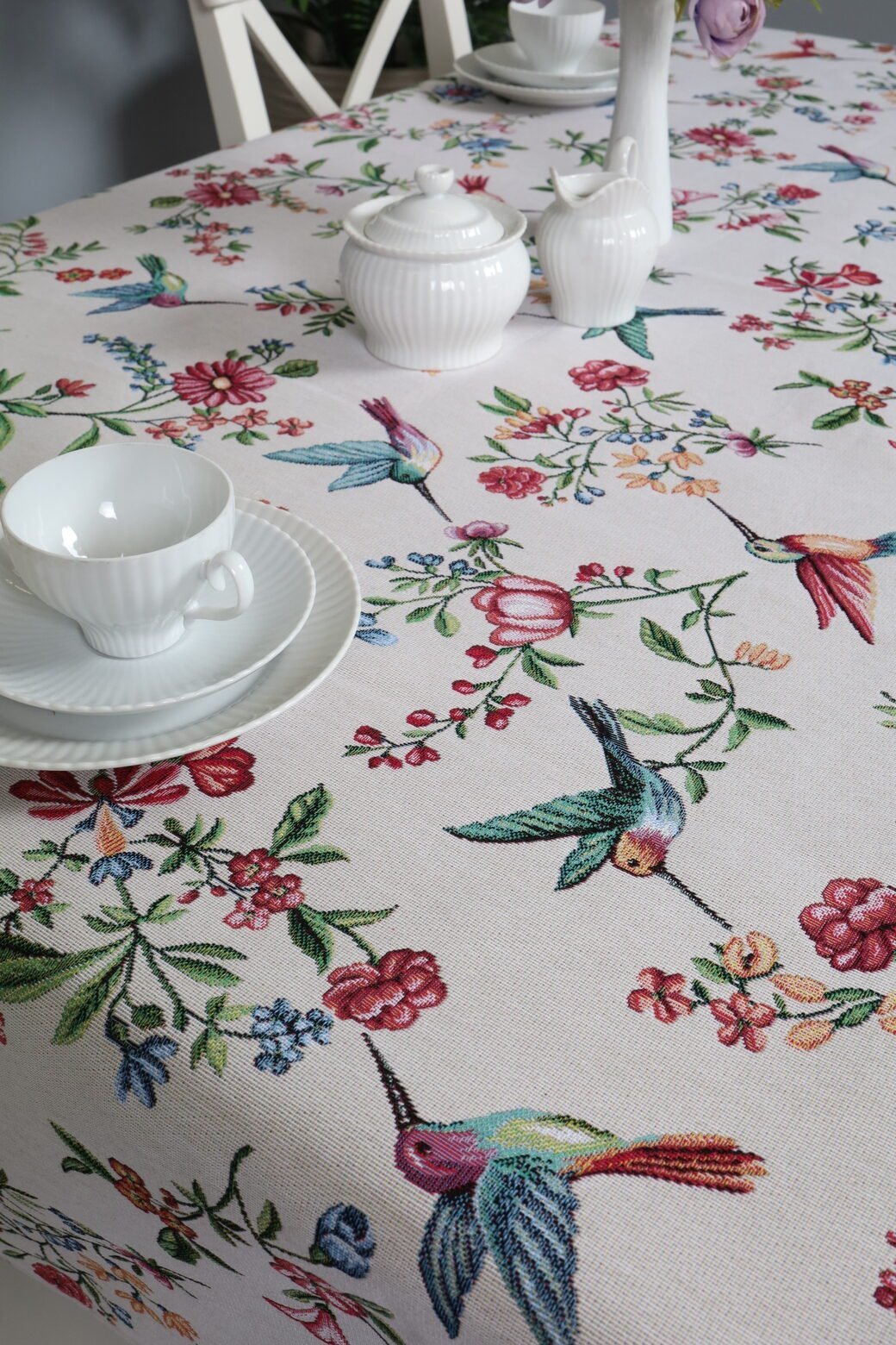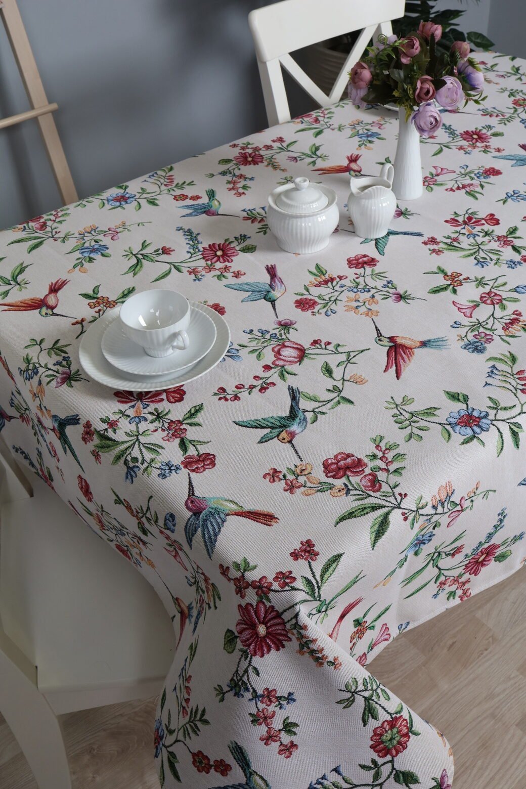 This table is accompanied by table wipes, table tracks and decorative pillows from the same collection. We invite you to look at other items of this collection and choose a set to decorate the interior of the house according to your needs. You can find table napkins whereThe table tracks of different sizes are in this shelvesAnd the decorative pillow covers are here. Care: we recommend cleaning the tablecloths with dry chemical cleaning. In an automatic washing machine, the fabric can be washed at a temperature not exceeding 30 degrees without the use of bleach and chlorine-containing washing agents. Gobelenic tissue must be naturally dried, it is important not to dry, and cannot be dried in an automatic dryer. It is recommended to compare not more than 110 degrees. Made in the European Union. In reality, the shades of the products can differ slightly from those of the photographs due to different settings of the computer colours, brightness and darkness, contrast settings.