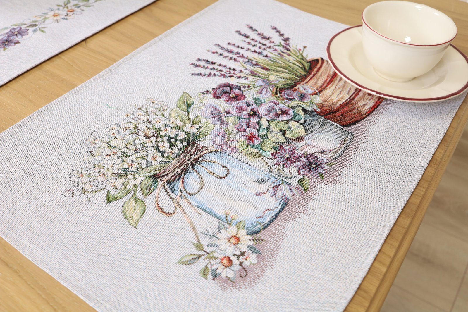 This uniquely designed tapestry placemat will brighten up your home interior and add a touch of distinction to your table. The sturdy, woven tapestry is high quality and durable, making it a great choice for both everyday use and special occasions. Complete your placemat set with a table runner from the same collection. You can find the table runner here.