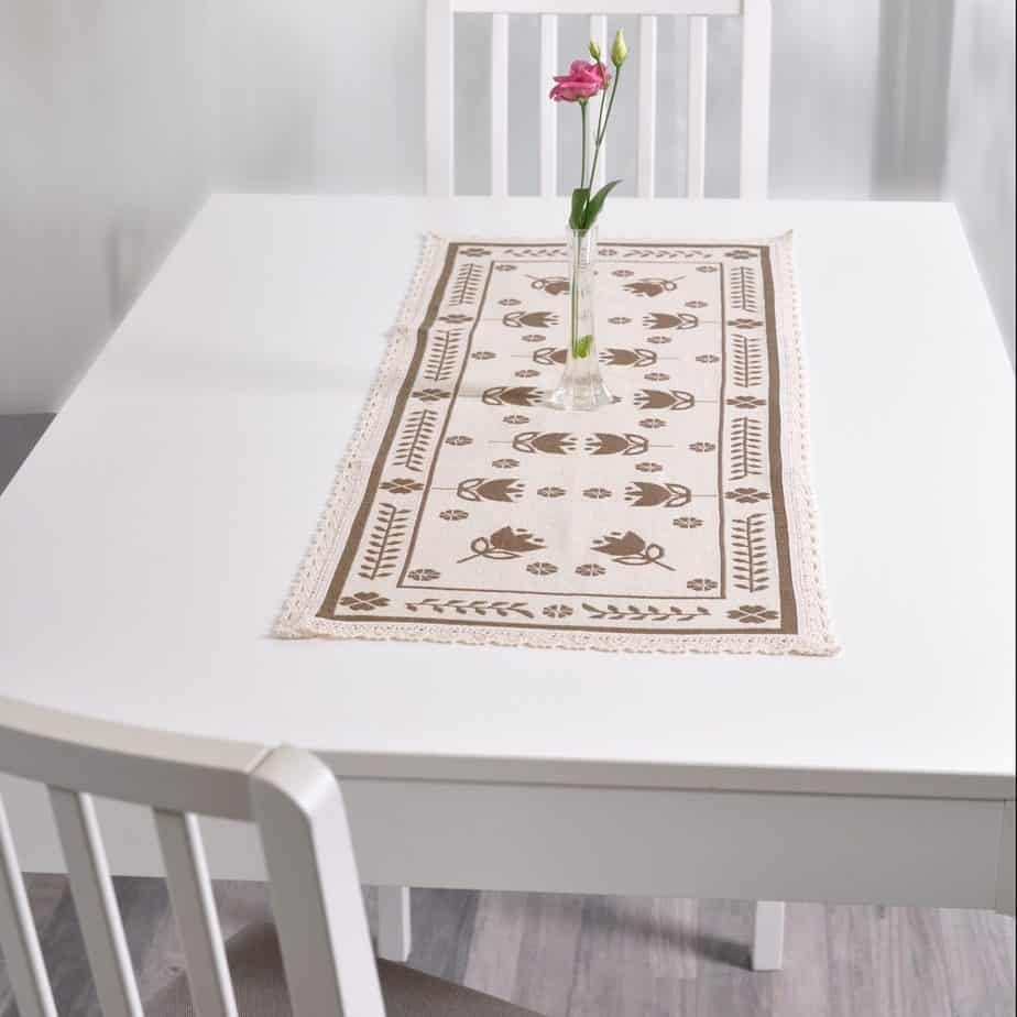 The feeling of coziness, simplicity and warmth that envelops you when you look at this line of products, this table runner, takes you back to your childhood home. The natural, calm, earthy colors and time-tested patterns woven into tablecloths, table runners, table placemats, and aprons fit perfectly into everyday, practical interiors and decorate farmhouse spaces.