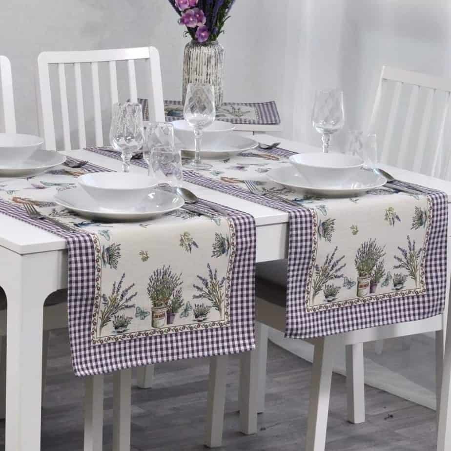 Table runner Butterflies and lavenders is made from tapestry fabric – subtle, decorative, luxurious, and always fashionable. Beautifully woven fabric table runners decorate the interior, while the durable tapestry fabric protects the table from “hot” stains, scratches, and general wear and tear. When you want different, unique table decorations, we invite you to purchase this fabric table runner made of tapestry fabric.