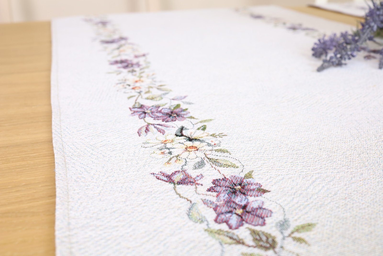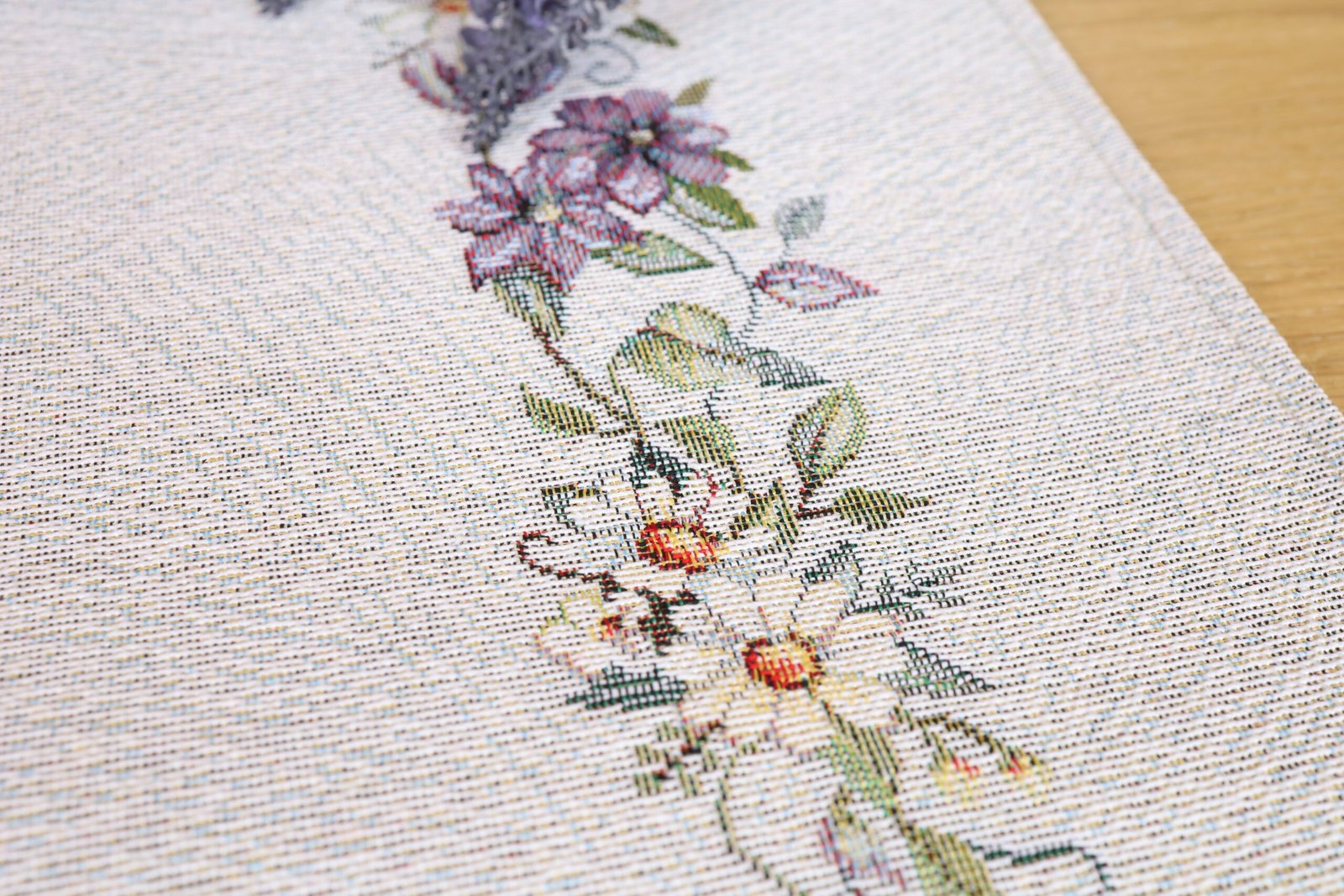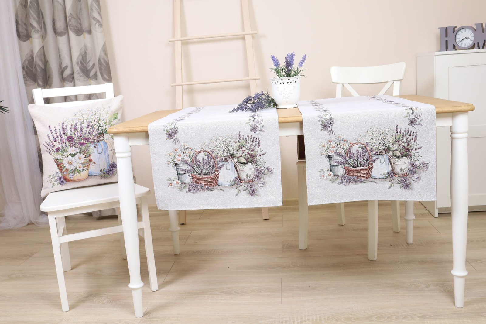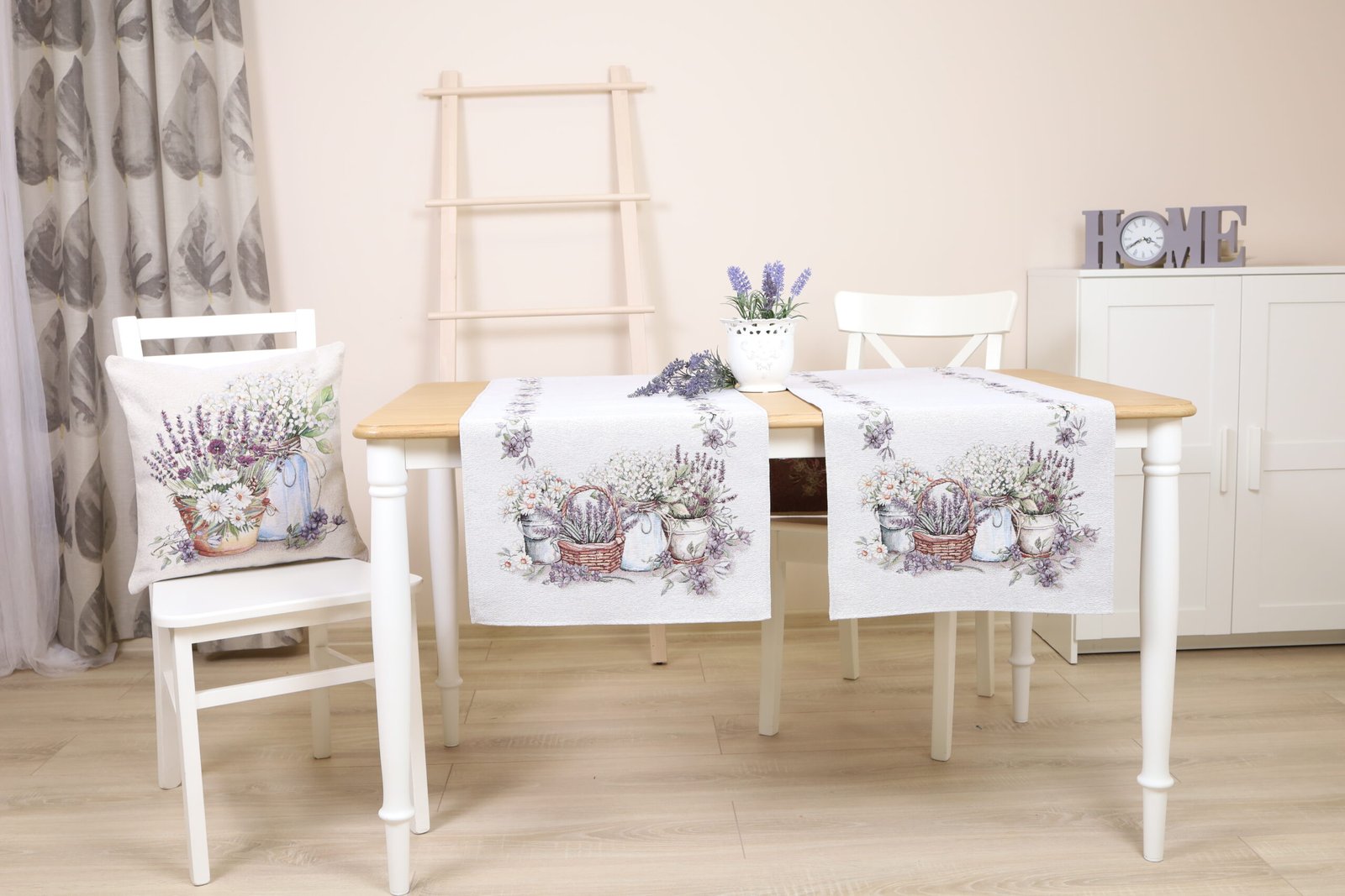 Table runner Lavender harmony is made from tapestry fabric – subtle, decorative, luxurious, and always fashionable. Beautifully woven fabric table runners decorate the interior, while the durable tapestry fabric protects the table from “hot” stains, scratches, and general wear and tear. When you want different, unique table decorations, we invite you to purchase this fabric table runner made of tapestry fabric.