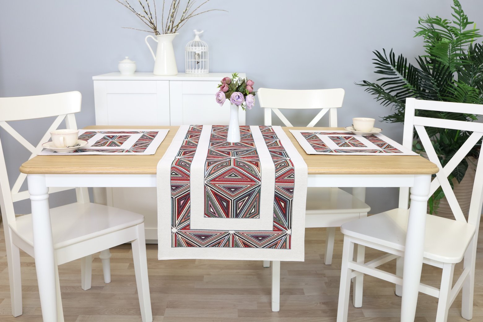 Care: We recommend washing table runners in an automatic washing machine. The fabric can be washed at a temperature no higher than 30°C, without bleach or chlorine-based detergents. Tapestry fabrics must be dried naturally because it is important not to over-dry them, and they shouldn’t be dried in an automatic dryer. We recommend ironing at a temperature of no more than 110°C.