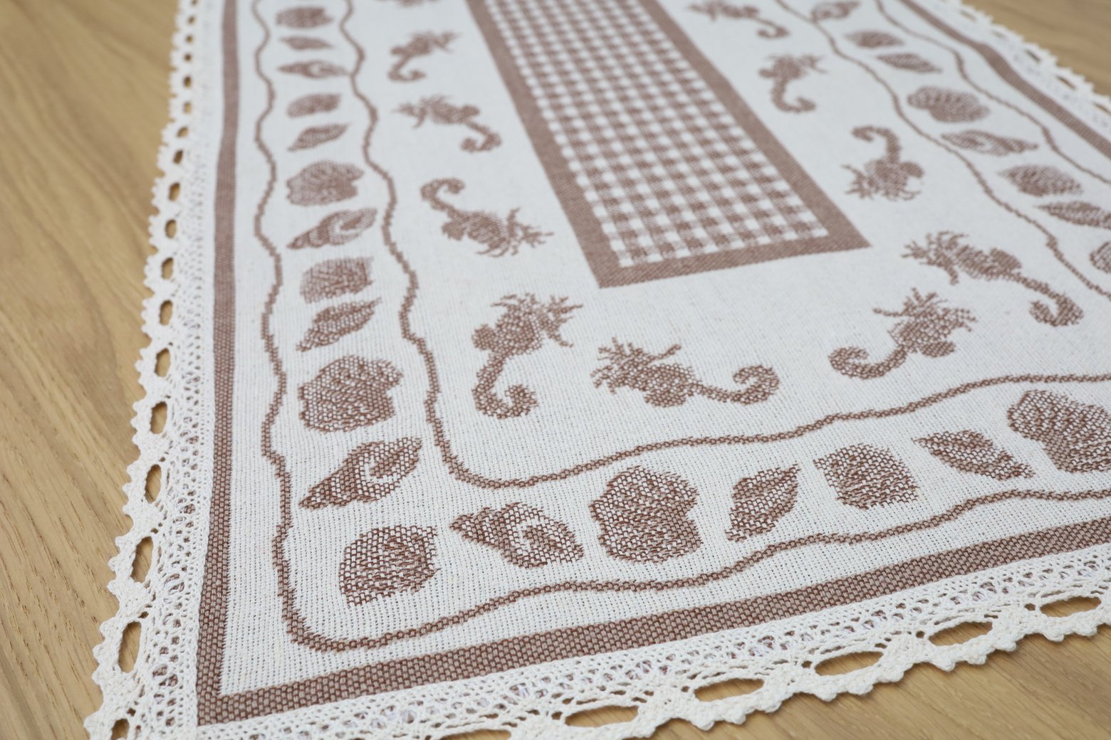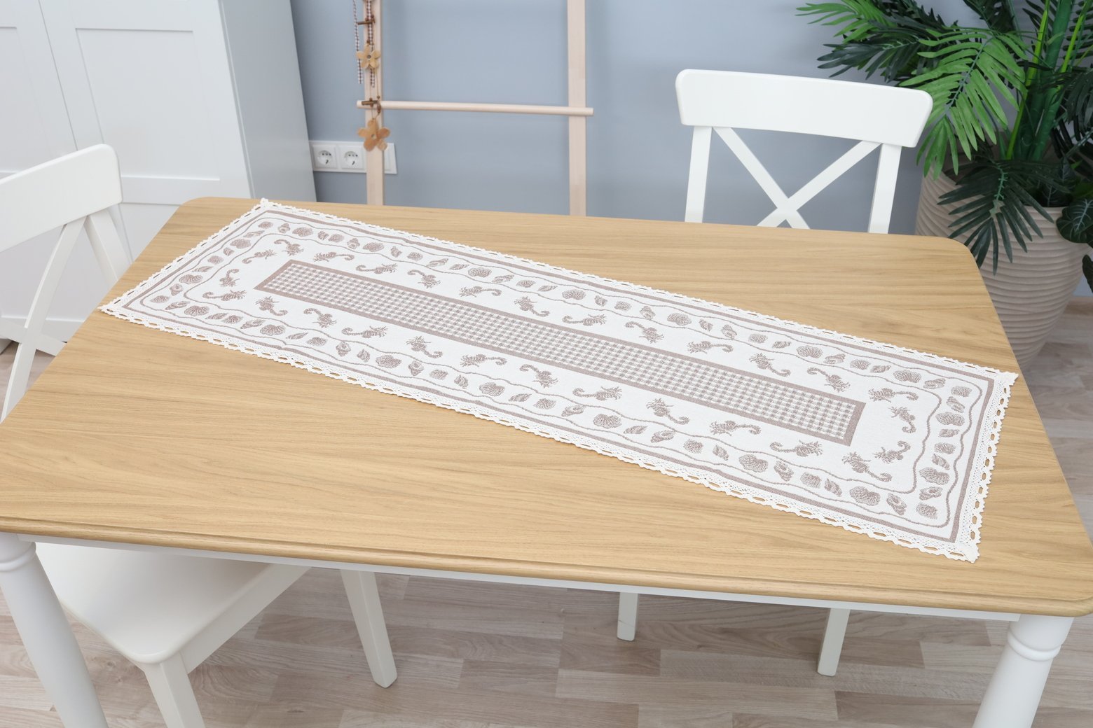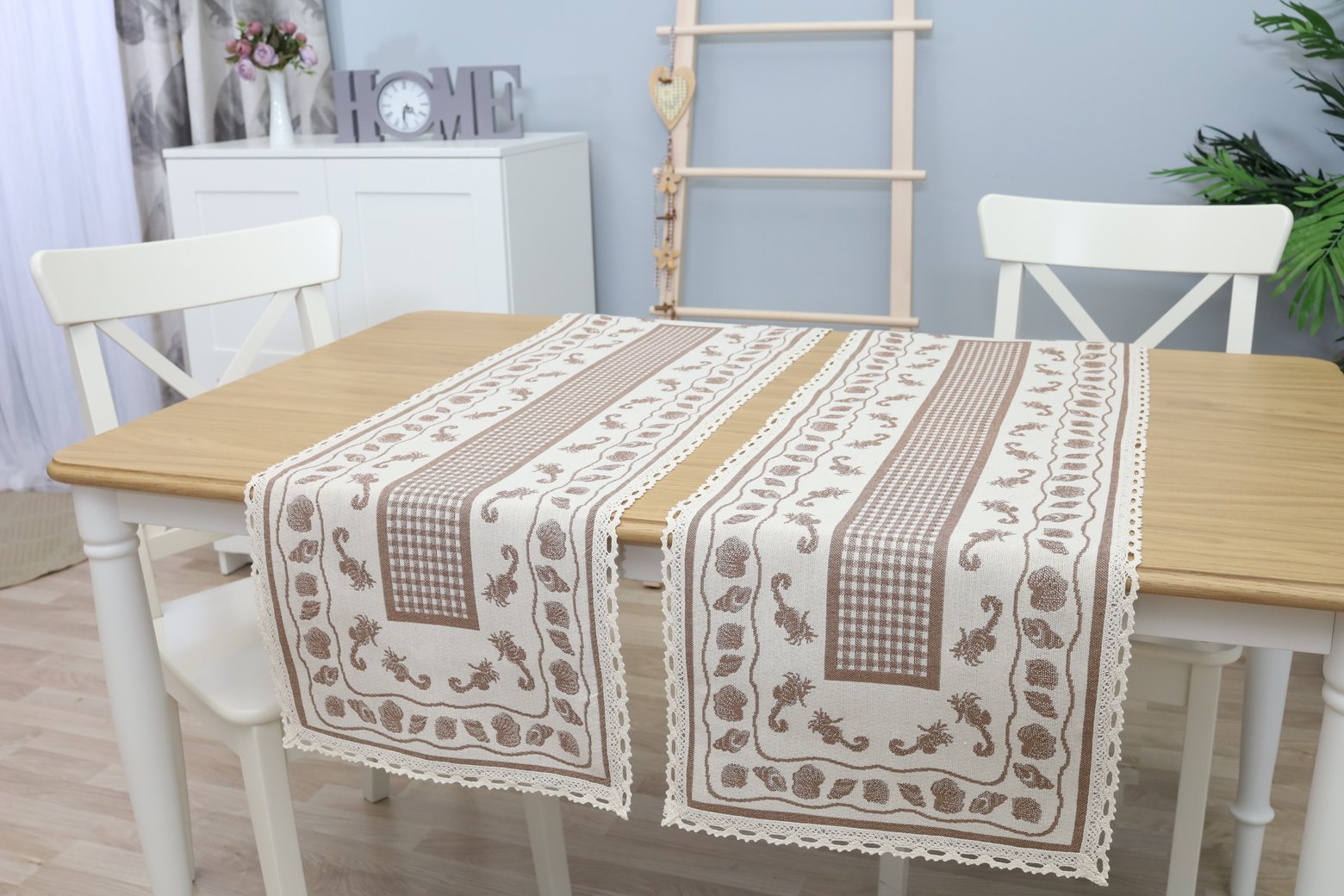 The feeling of coziness, simplicity and warmth that envelops you when you look at this line of products, this table runner, takes you back to your childhood home. The natural, calm, earthy colors and time-tested patterns woven into tablecloths, table runners, table placemats, and aprons fit perfectly into everyday, practical interiors and decorate farmhouse spaces.