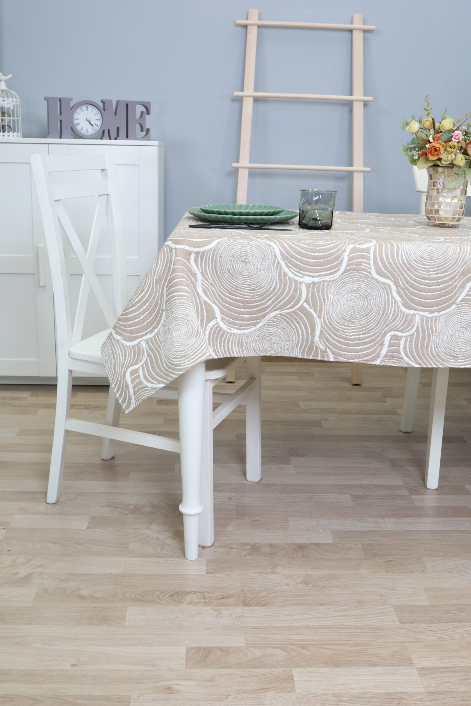 This elegant tablecloth is made from high-quality fabric composed of 35% cotton and 65% polyester. This combination makes the tablecloth durable, easy to care for, and long-lasting. Cotton provides naturalness and softness, while polyester ensures resistance to wrinkles and easy ironing. The subtle design makes it suitable for both everyday use and special occasions.
