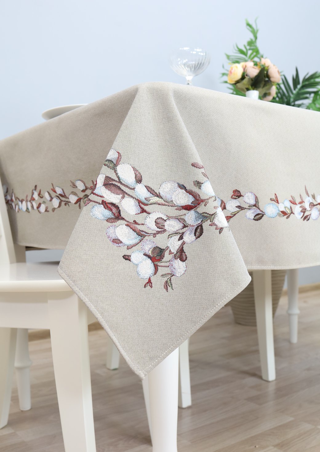 A luxurious, elegant tablecloth Catkin is made of sturdy tapestry fabric. It is a high-quality, subtle, and memorable gift.