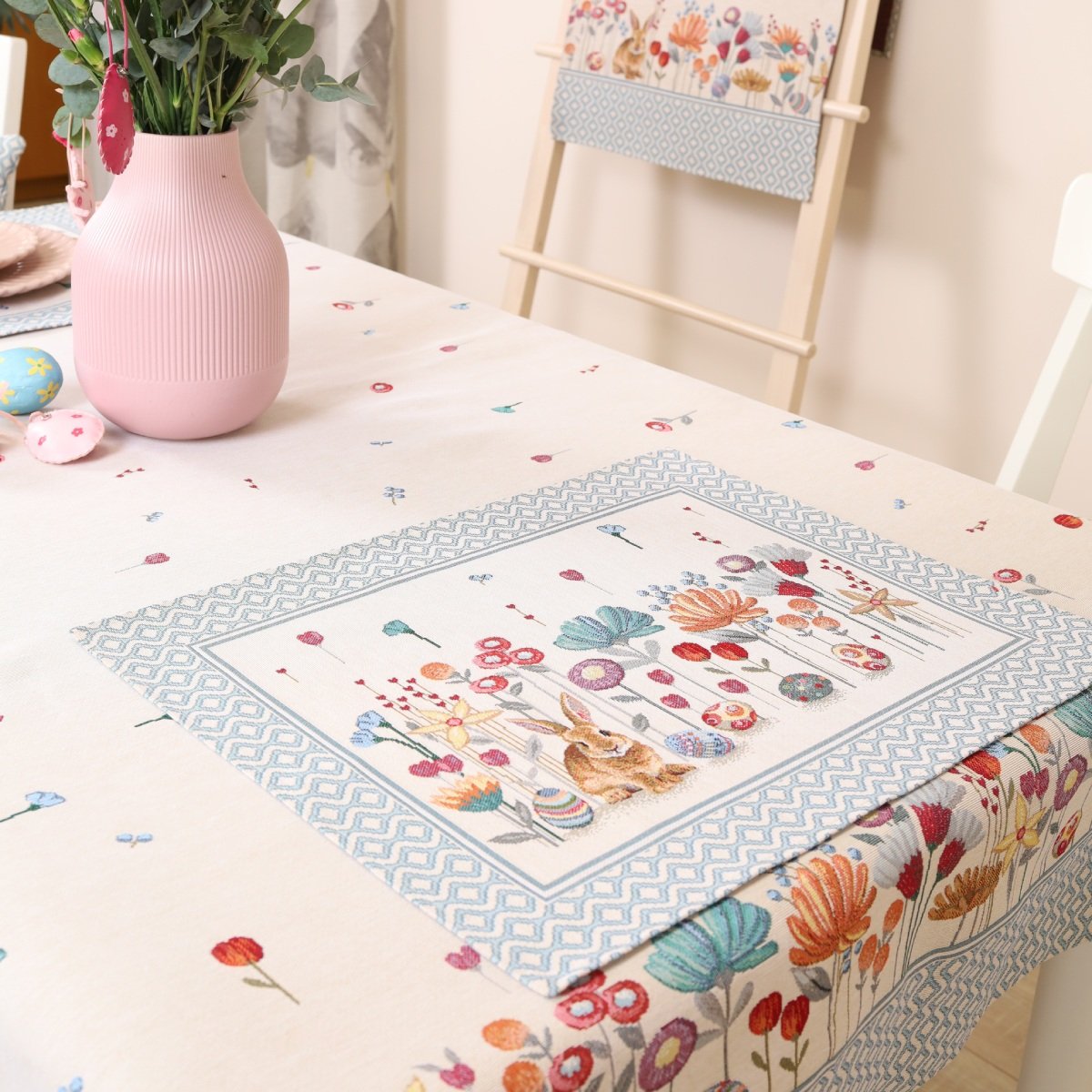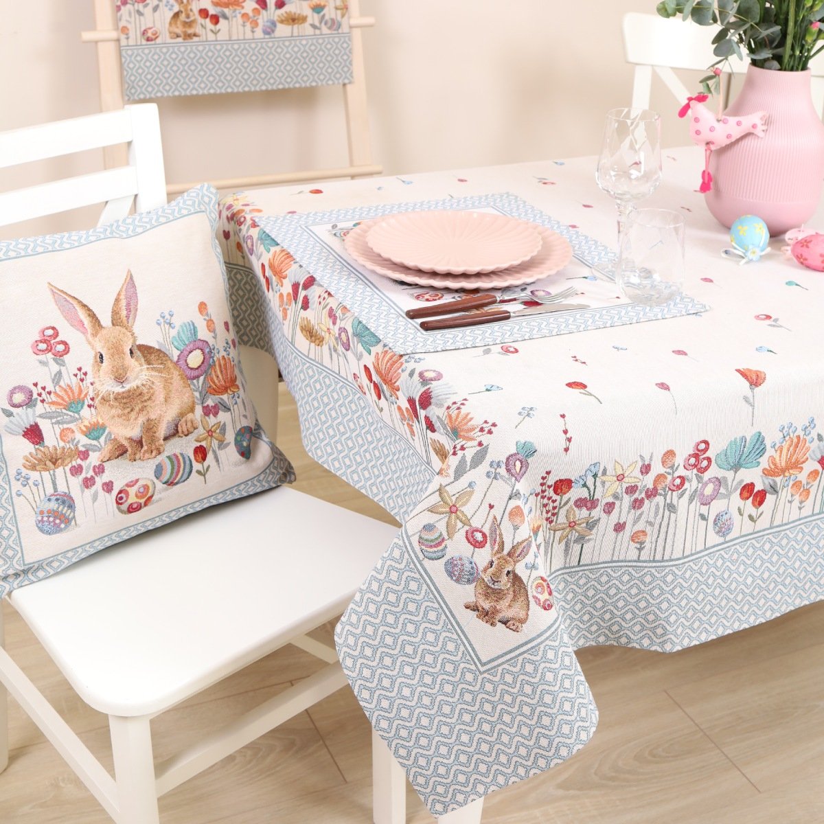 A luxurious, elegant tablecloth Easter bunny is made of sturdy tapestry fabric. It is a high-quality, subtle, and memorable gift.