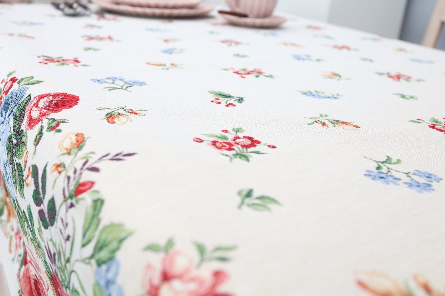 Care: We recommend dry cleaning tablecloths. The fabric can be washed at a temperature no higher than 30°C, without bleach or chlorine-based detergents. Tapestry fabric must be dried naturally because it is important not to over-dry them, and they should not be dried in an automatic dryer. We recommend ironing at a temperature of no more than 110°C.
