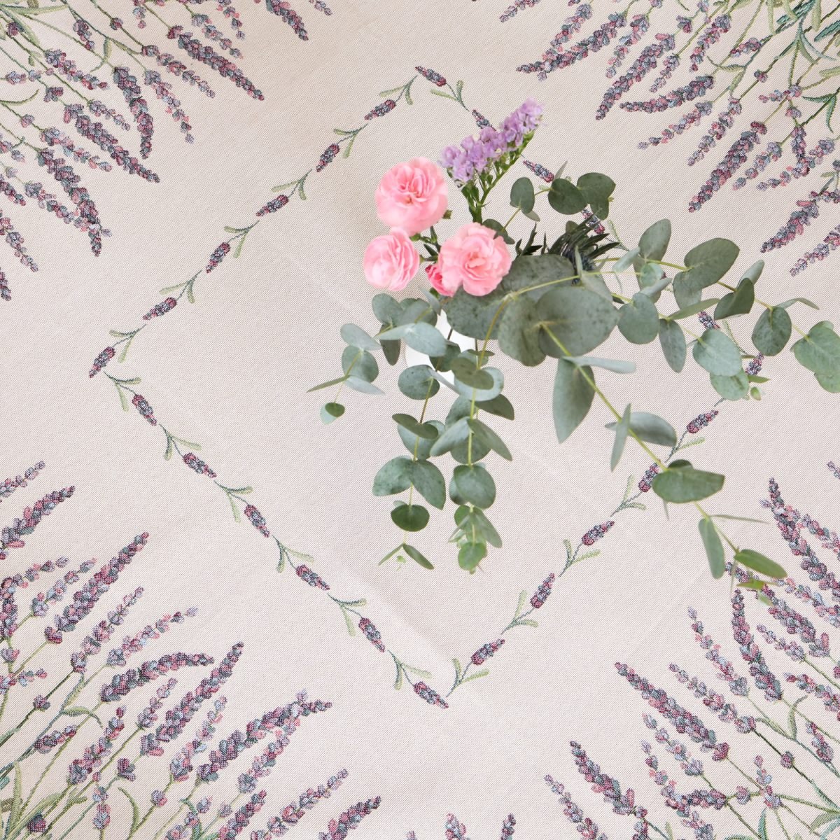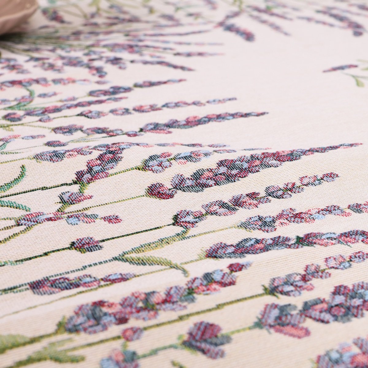 A luxurious, elegant tablecloth Fragrant lavender is made of sturdy tapestry fabric. It is a high-quality, subtle, and memorable gift.